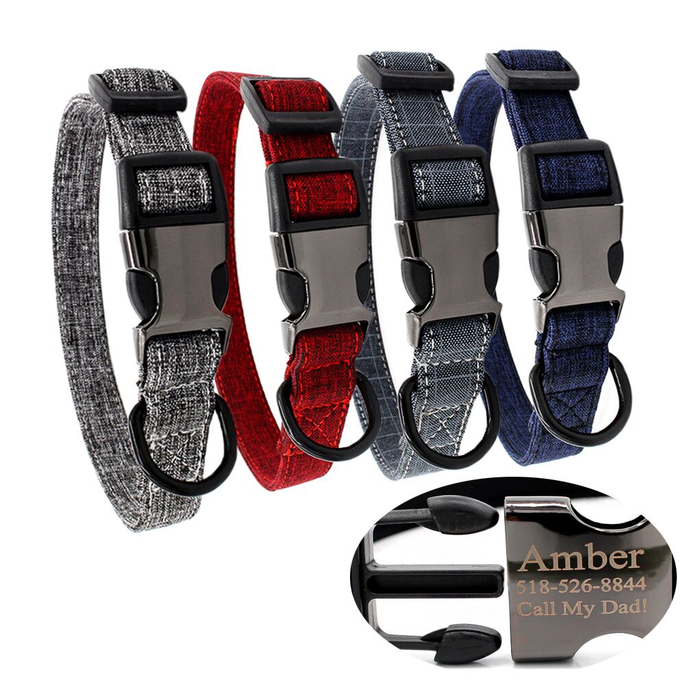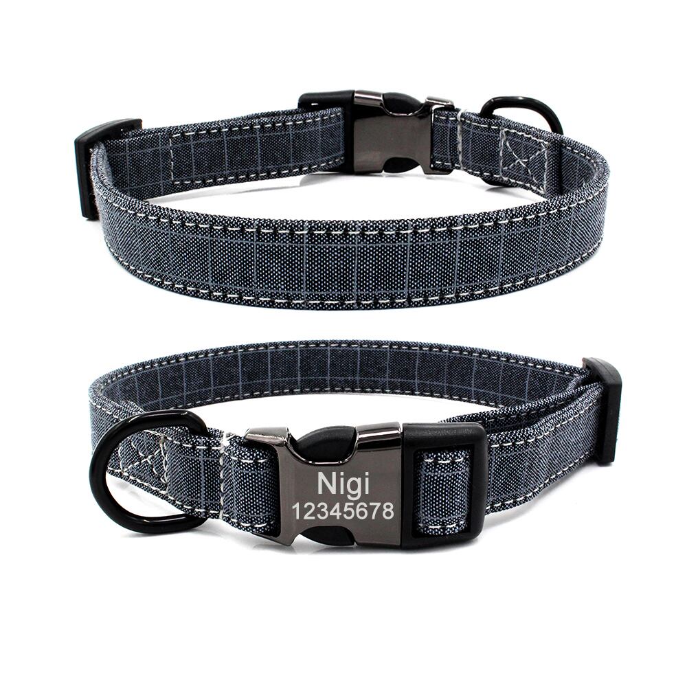 Cl 格子縞の犬の首輪 パーソナライズされた ID ナイロン ペット カスタム 刻印された名前 猫 レザー ネックレス 調節可能 小 中 大