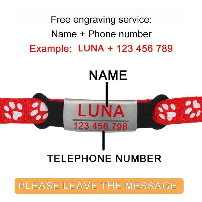 ドットプリントナイロン首輪カスタムパーソナライズID無料彫刻猫小型犬かわいいナイロン調節可能な子犬子猫ネックレス