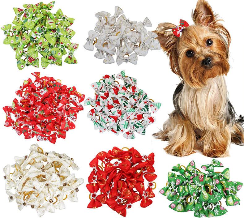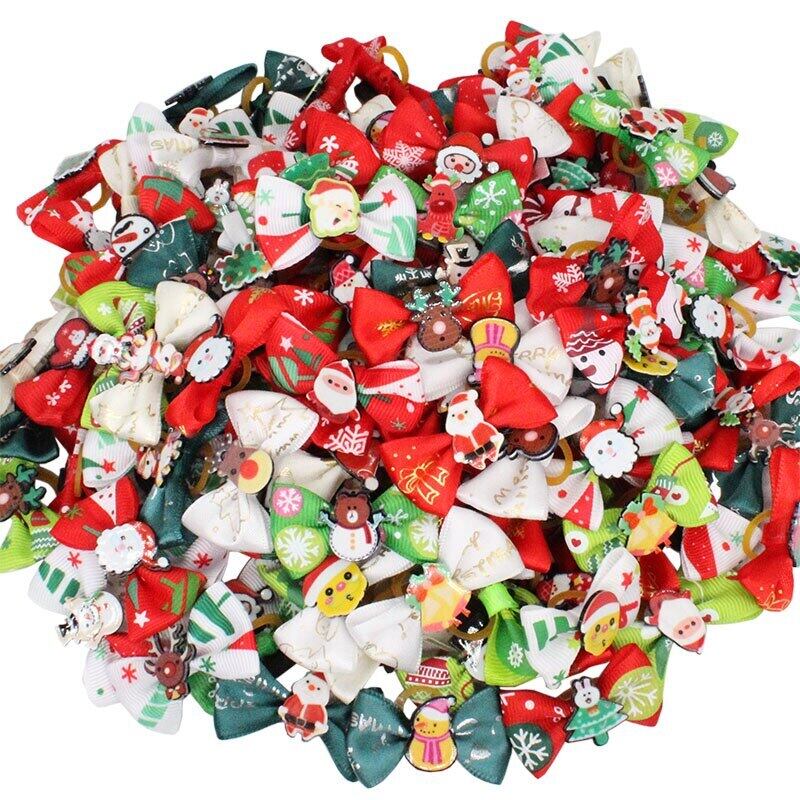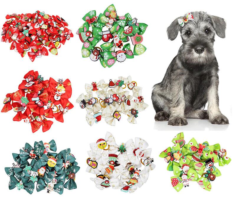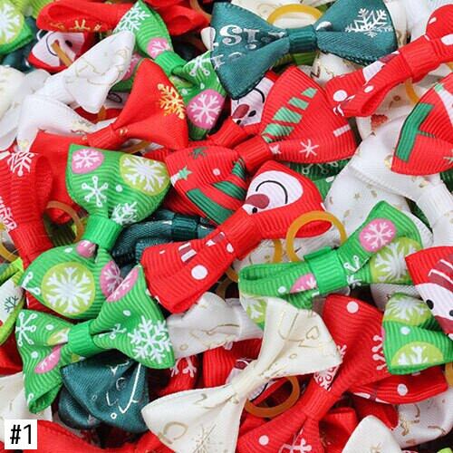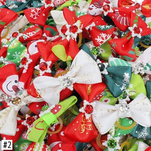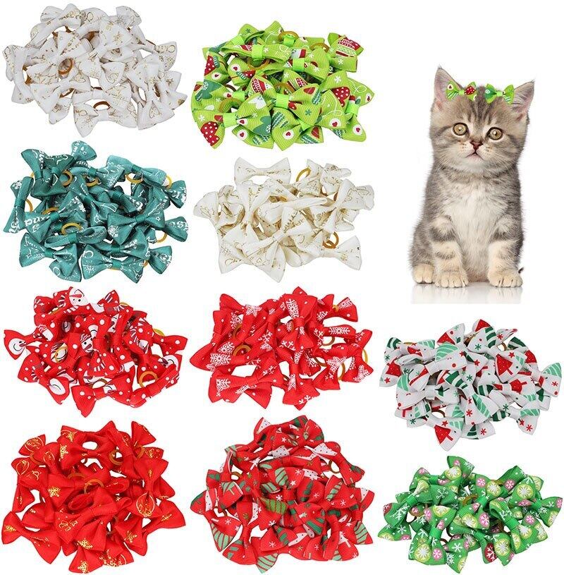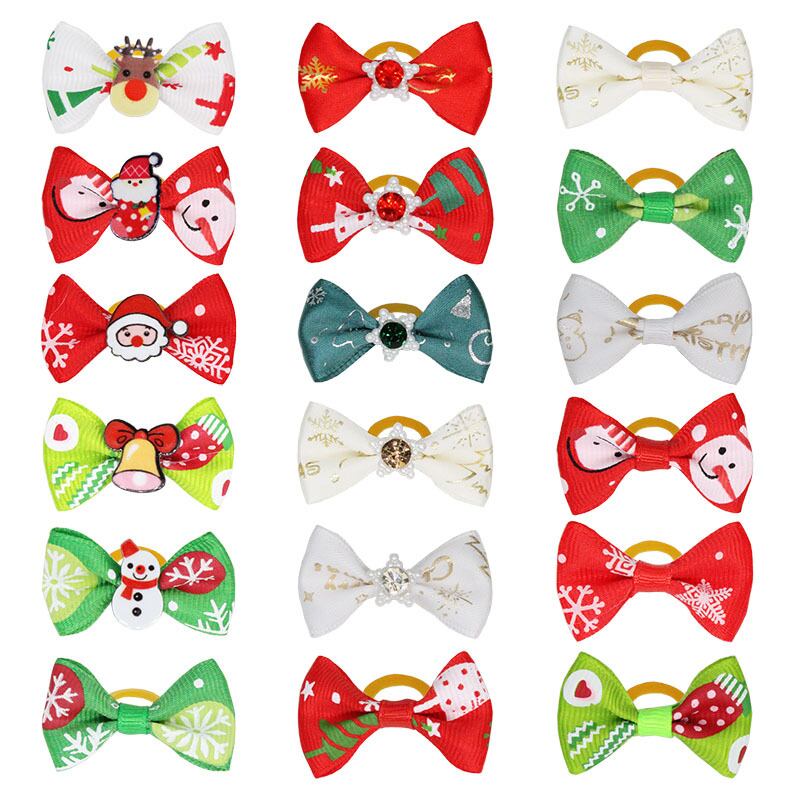 10/20 個ペットの毛の弓ゴムクリスマス犬の弓猫のヘアアクセサリーパーティー子犬小型犬ペット用品