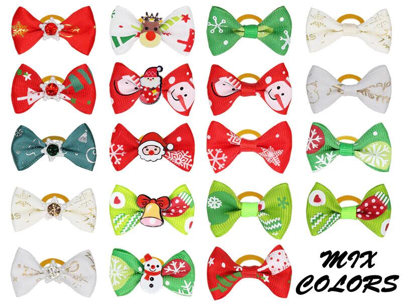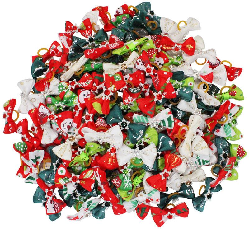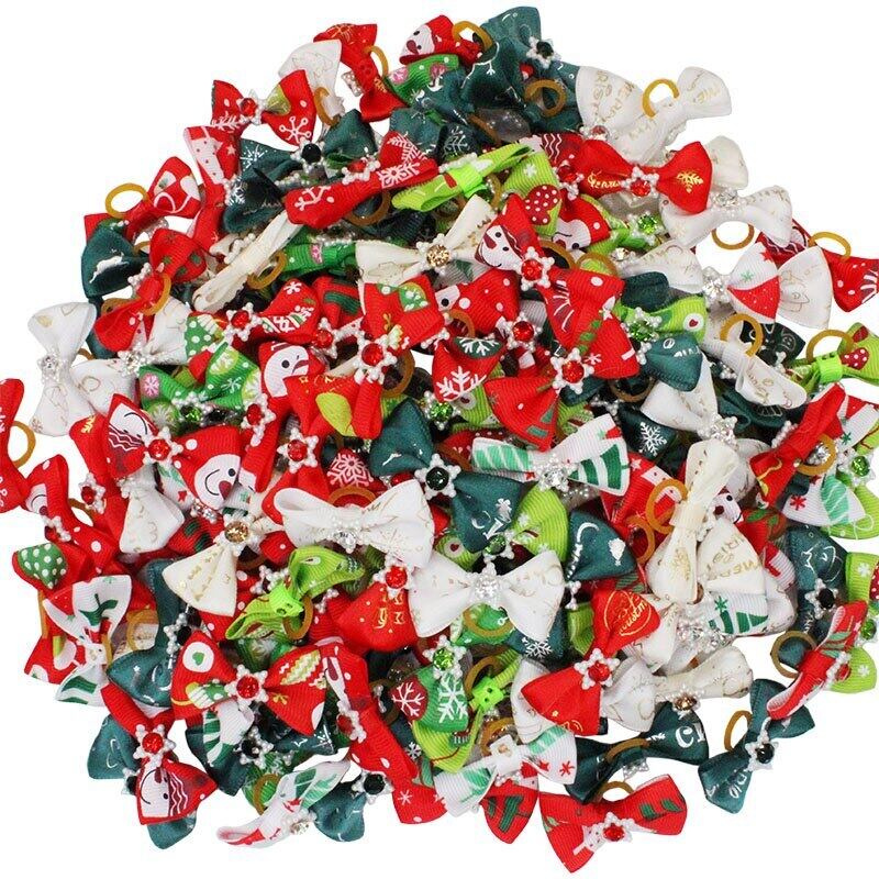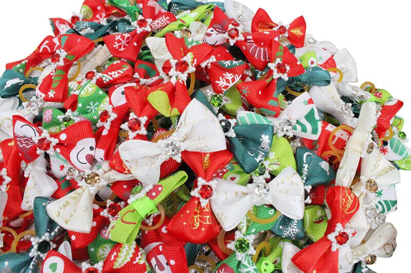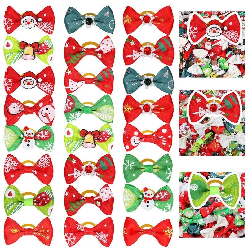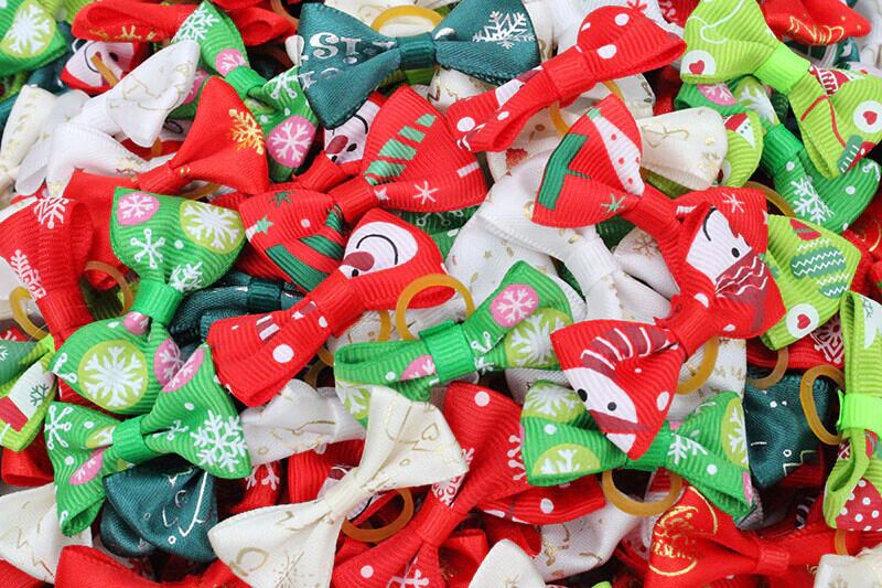 10/20 個ペットの毛の弓ゴムクリスマス犬の弓猫のヘアアクセサリーパーティー子犬小型犬ペット用品