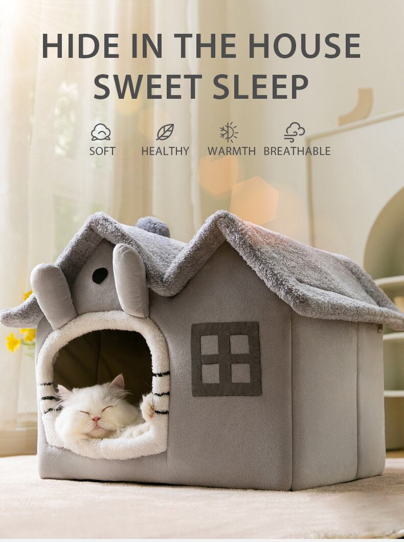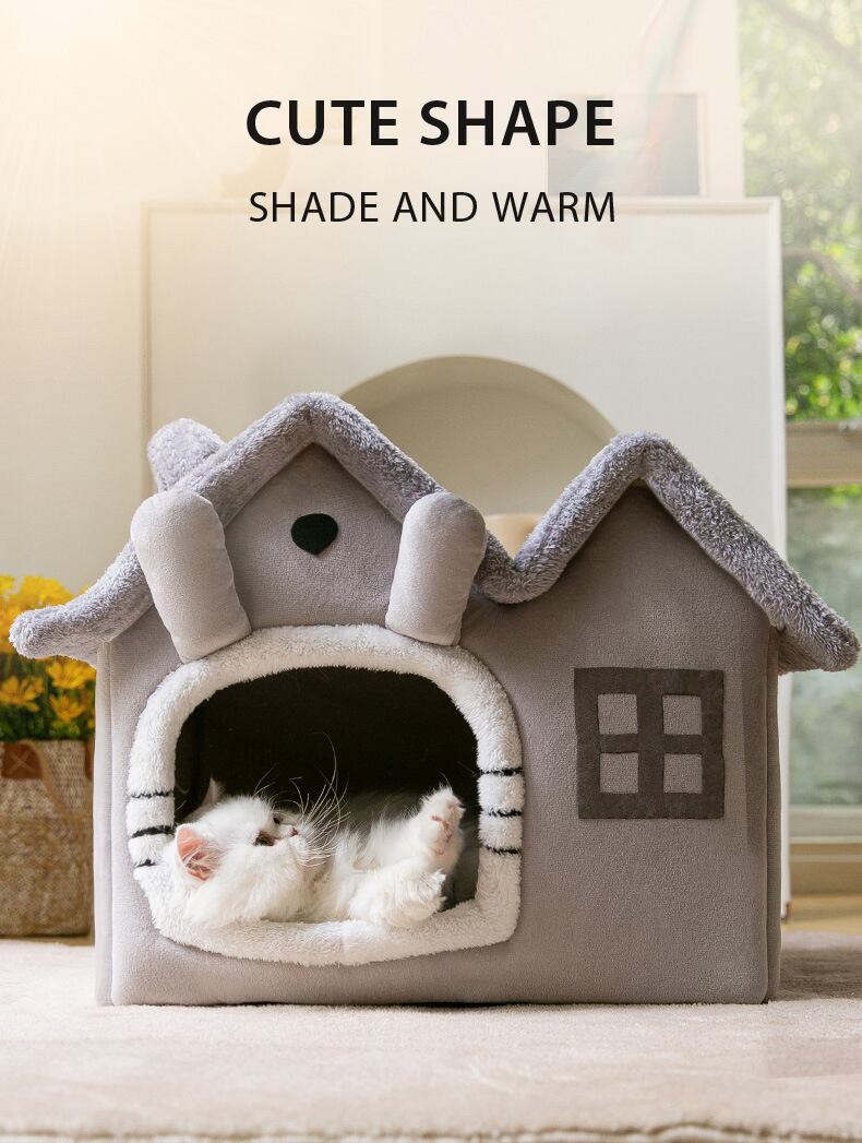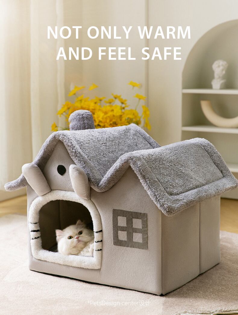 CAWAYI 犬舎 冬 通気性 暖かい ぬいぐるみ ペット ベッド ハウス 取り外し可能 洗える ソフト 猫 クッション ベッド 小型犬 猫 ペット用品