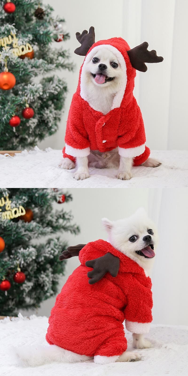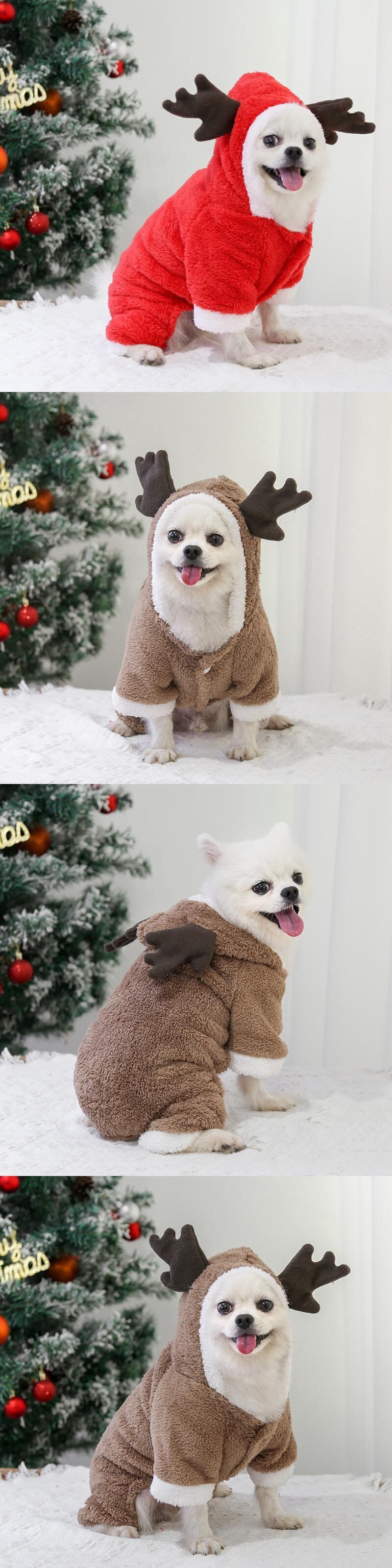 クリスマスペット犬服冬暖かい犬コートソフトコーラルフリース犬セーターかわいいヘラジカペットチワワヨーキー