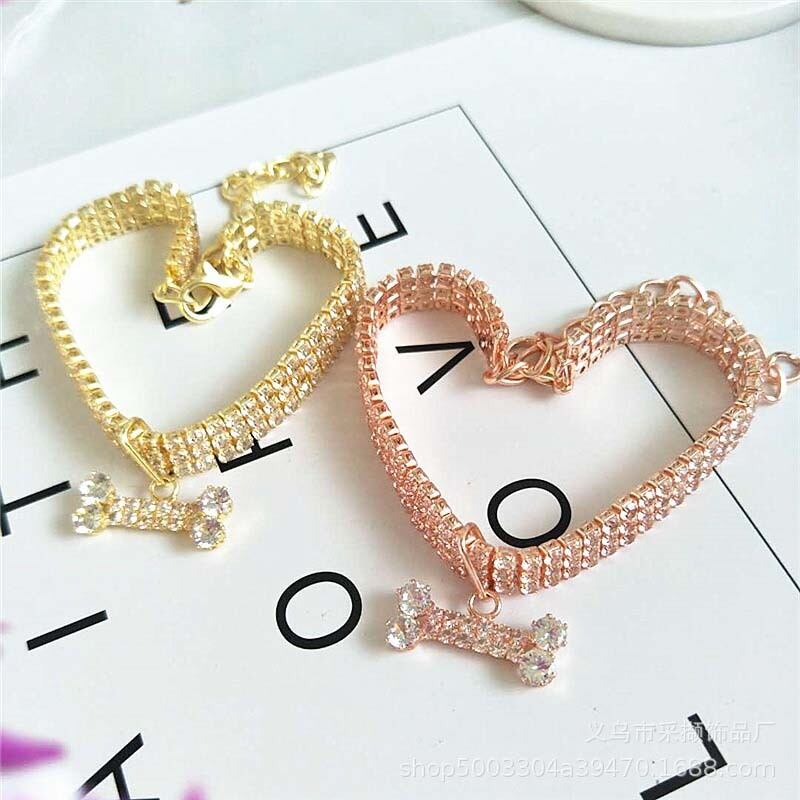 ホットブリンブリン美容ラインストーンペットの犬のダイヤモンドの骨のペンダントネックレスクリスタルジュエリーチワワ犬の首輪犬のアクセサリー