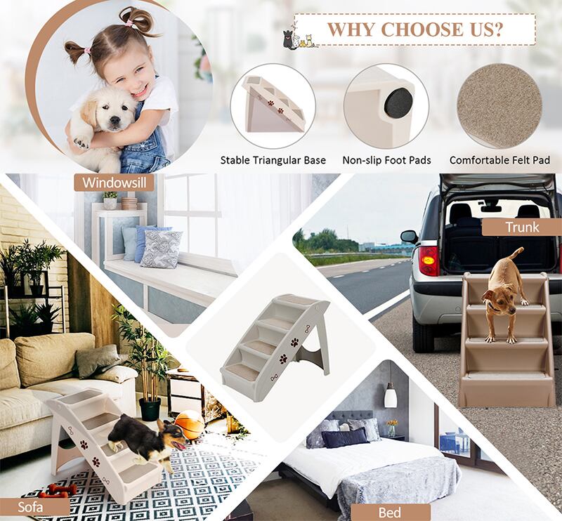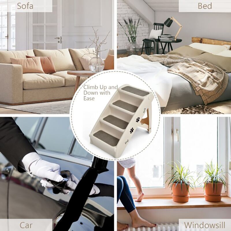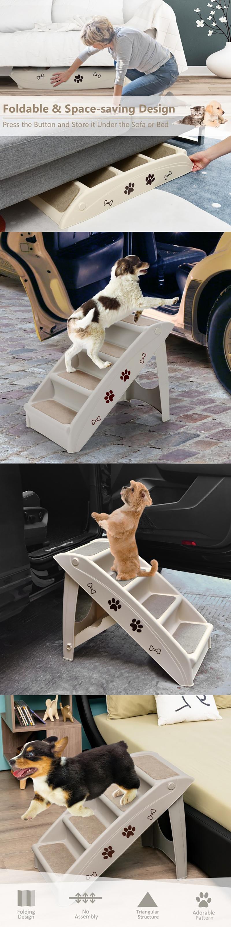 ホット折りたたみプラスチックペット階段 4 ステップはしご小型犬と猫滑り止め折りたたみペットランプ用品