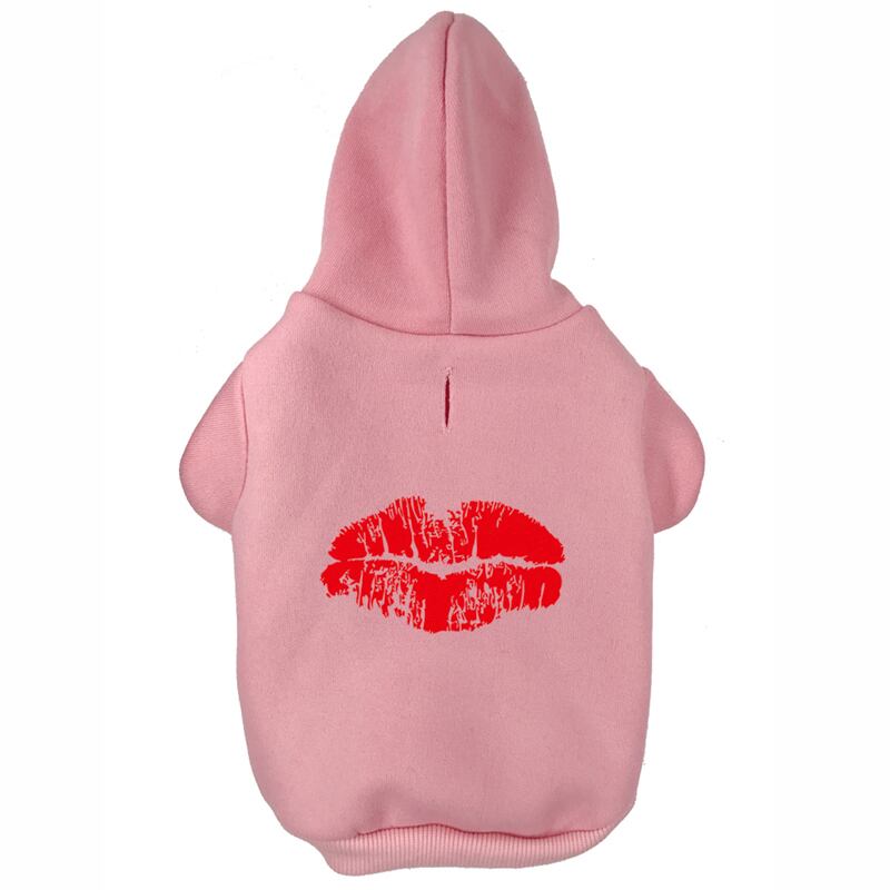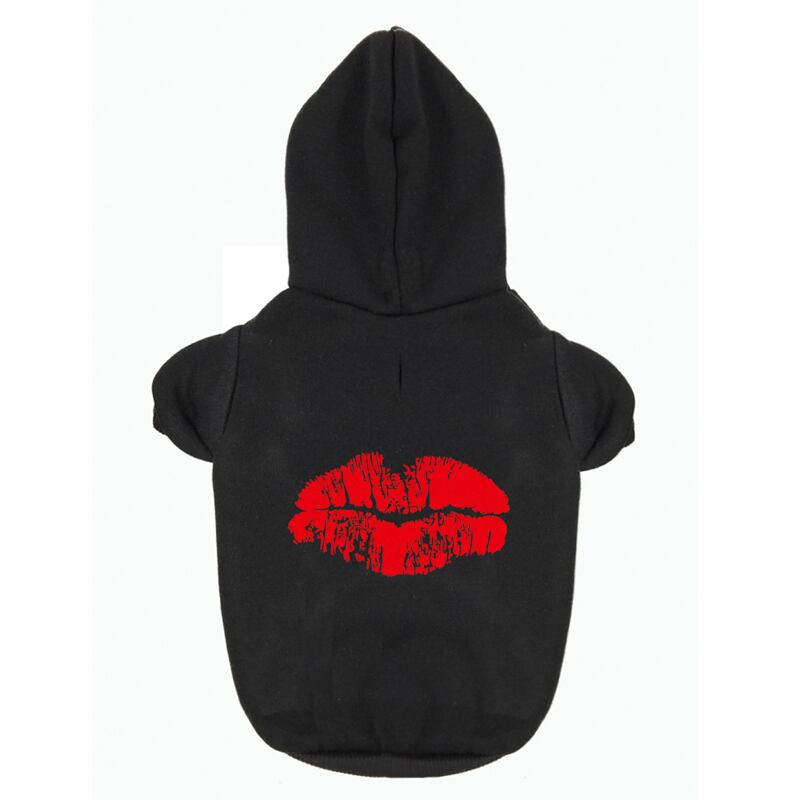 赤い唇プリント ペット子犬犬服パーカー ジャンパー トラックスーツ小中大犬