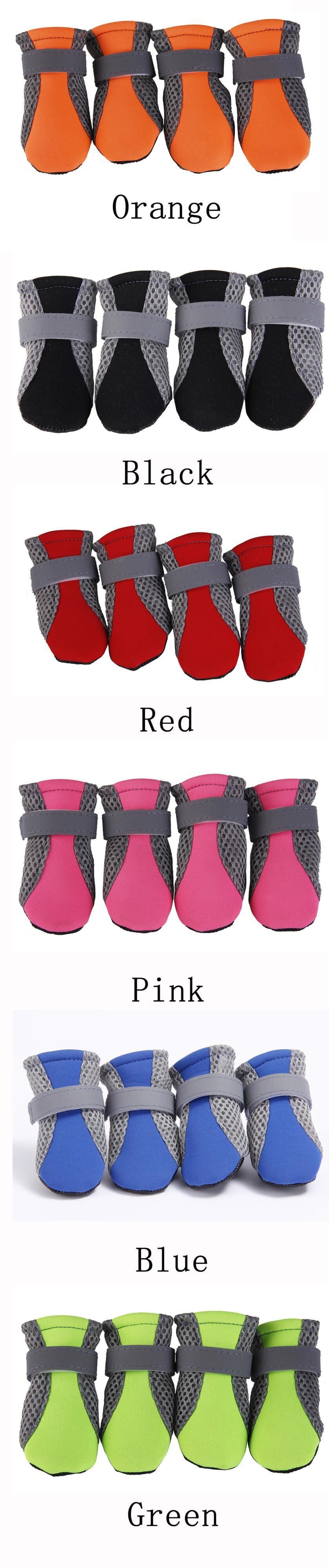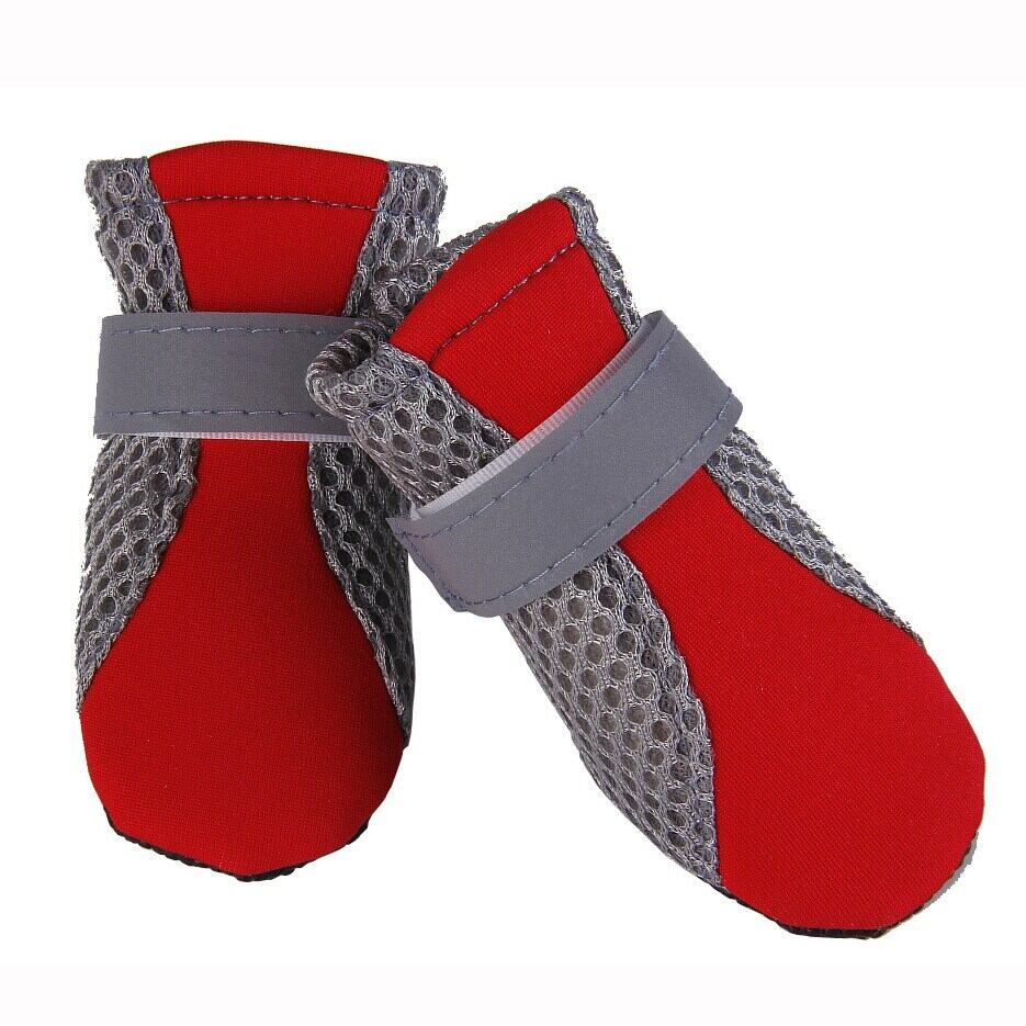 4 ピース/セット通気性ネットペット犬の靴小型猫犬子犬犬靴下ブーツノンスリップウェアラブルソフトラバーソール