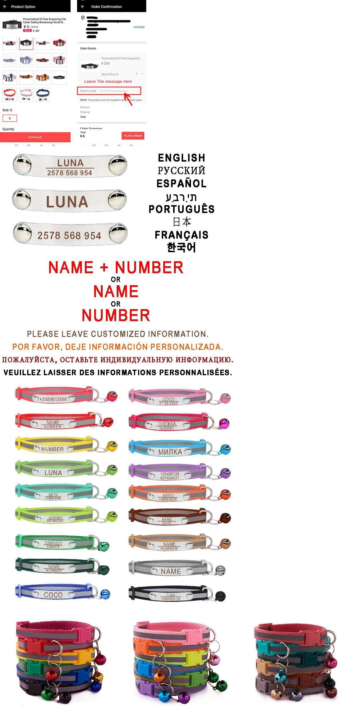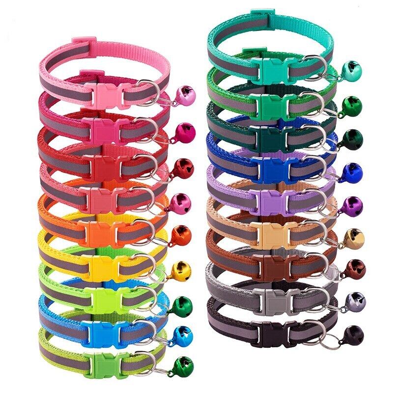 パーソナライズされた ID 犬の首輪 反射調整可能なナイロン ベル付き カスタム刻印 子犬 子猫 ネックレス
