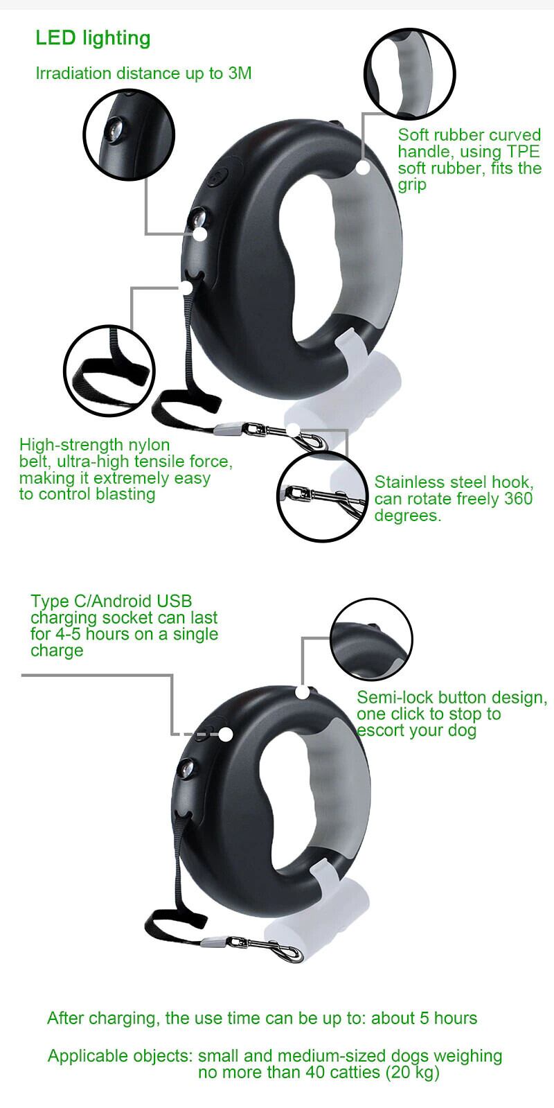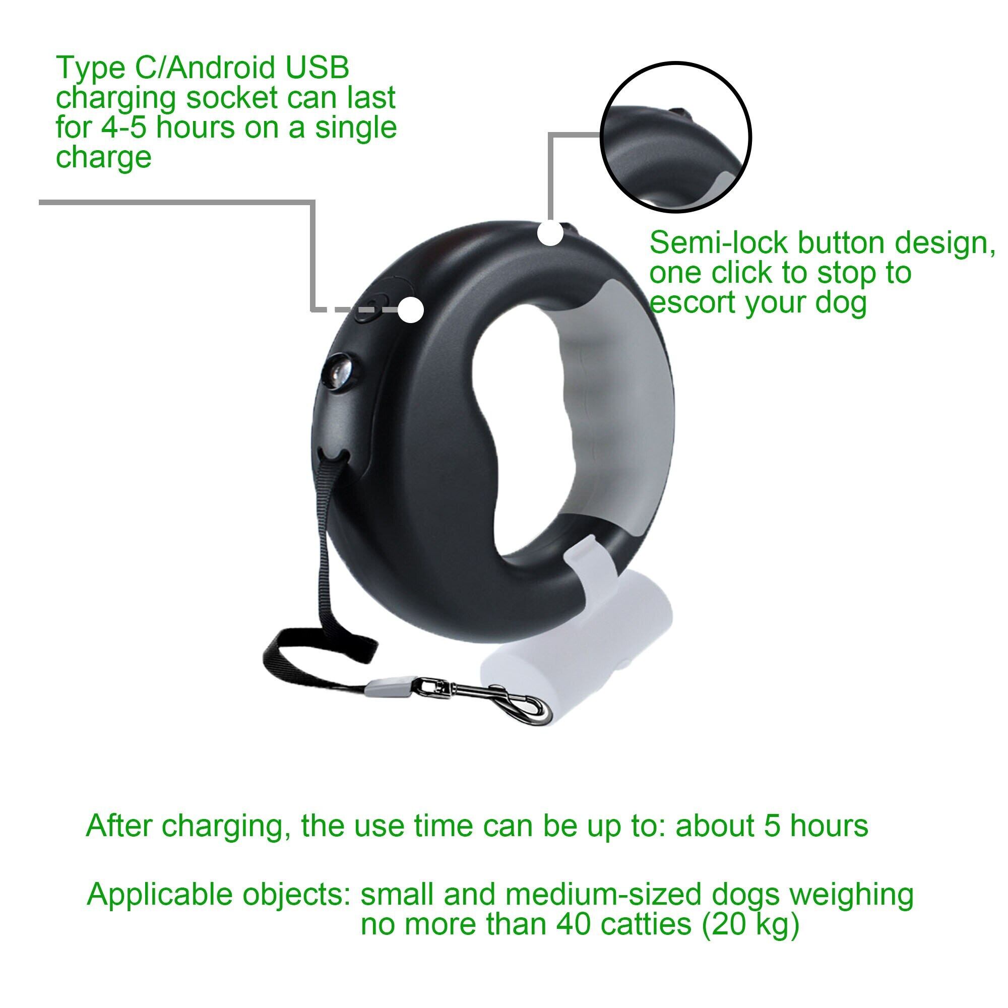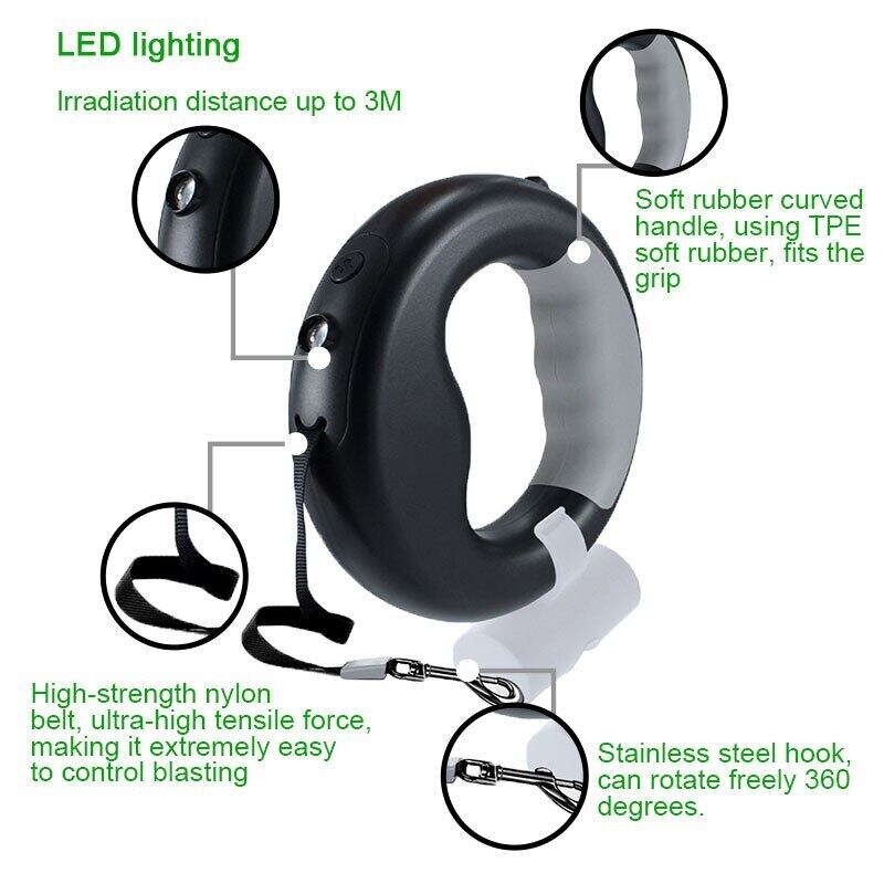 Led 犬の鎖とゴミ袋ペットナイロン鎖犬猫夜自動延長安全ペット牽引ロープ犬のアクセサリー
