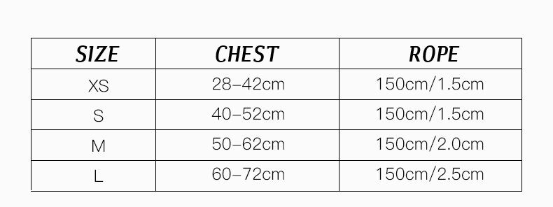 サイズ:XS胸囲28-42cm,S胸囲40~50cm,M胸囲50-62cm,L胸囲60-72cm
