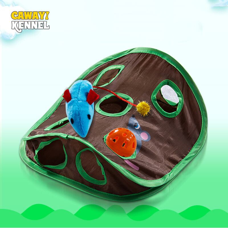 Cawayi 犬小屋 ペット 猫のおもちゃ トンネル 折りたたみ式 9穴 チューブ キティ トンネル おもちゃ 面白い猫スティック 鳴るベル付き 猫のトレーニングおもちゃ