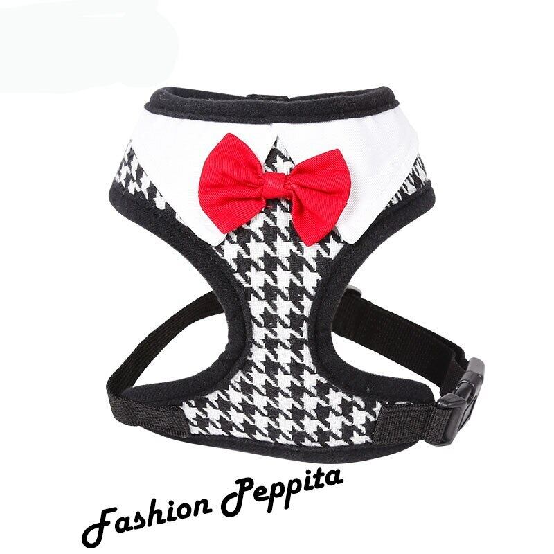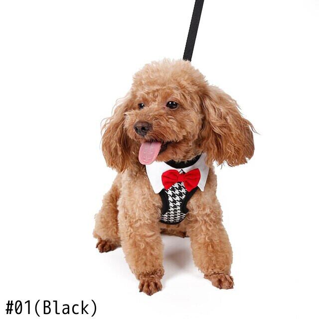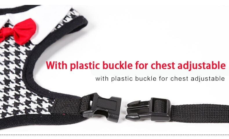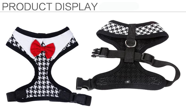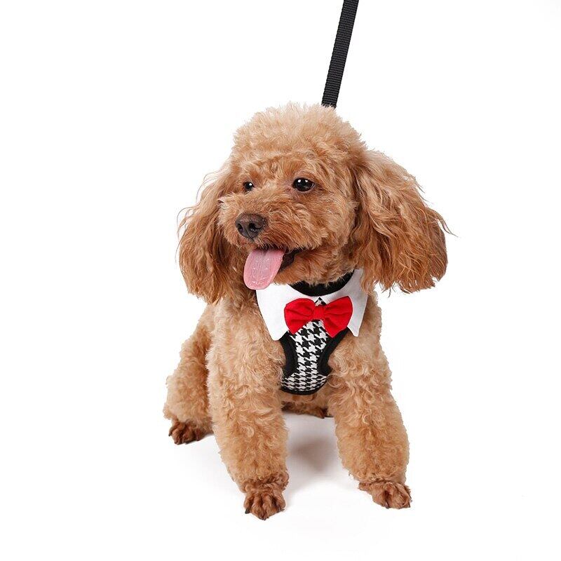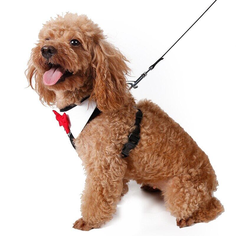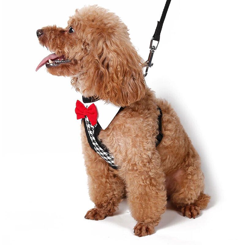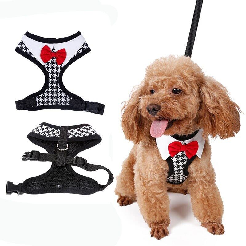 レッドボウタイブラックリーシュ調節可能ソフト通気性犬猫コントロール犬ハーネスセットナイロンペット子犬の首輪チェストストラップ