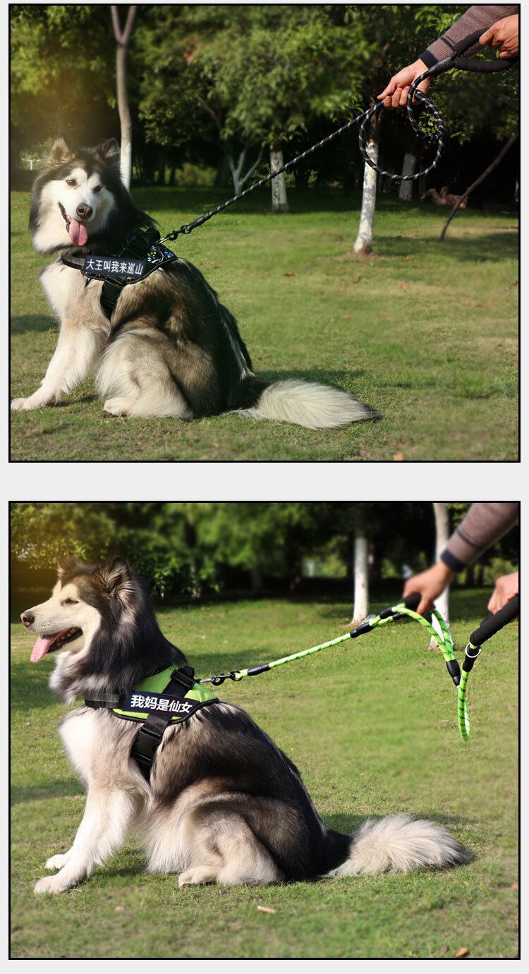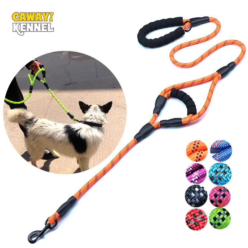 CAWAYI KENNEL ナイロン反射ソフトペット犬チェーン牽引ロープダブルハンドルリーシュトレーニングウォーキングリード犬ペット用品