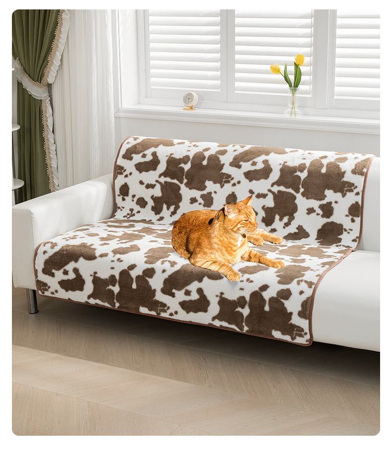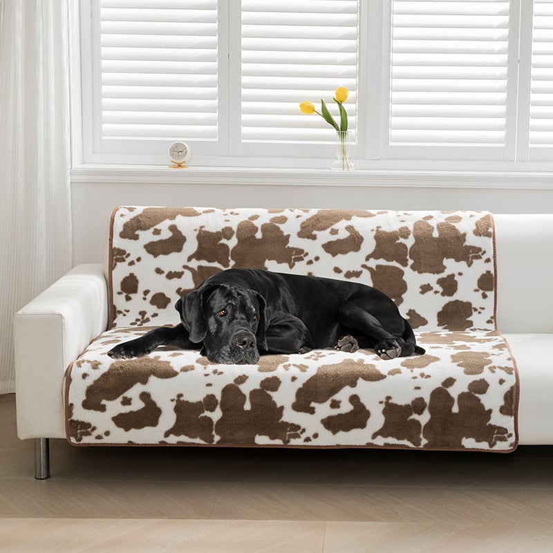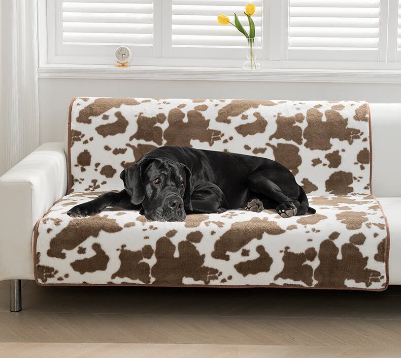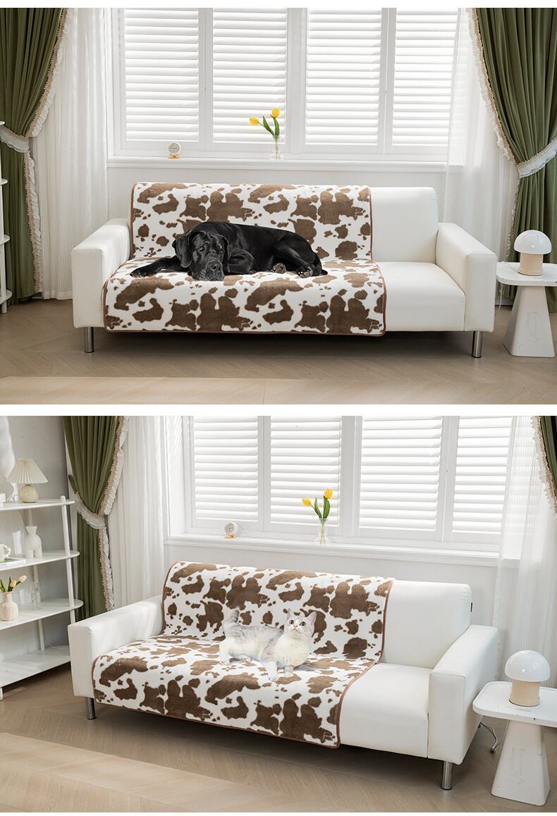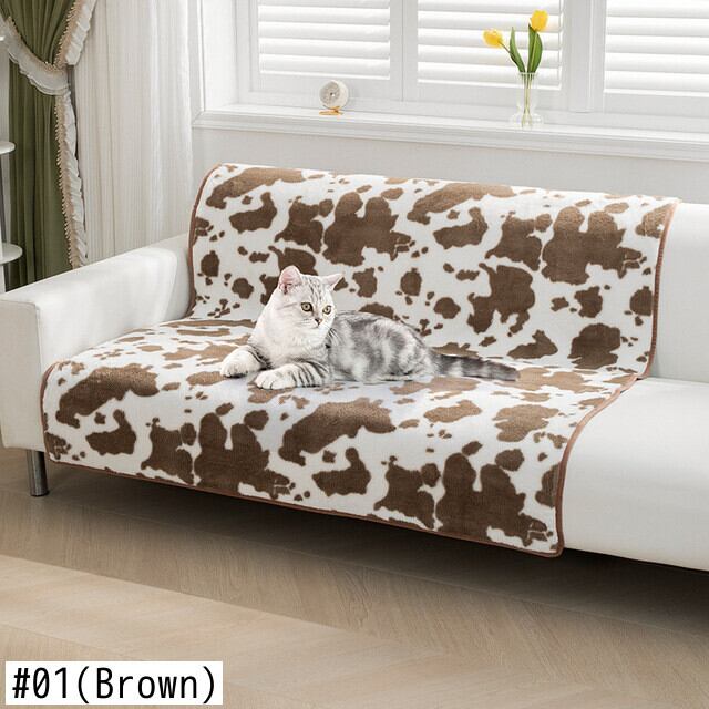 CAWAYI KENNEL ソフトブランケット 犬用ソファカバー クッション ペットベッド 牛柄 ブラウン スリーピングマット 大型犬 ソファ 巣 猫シート