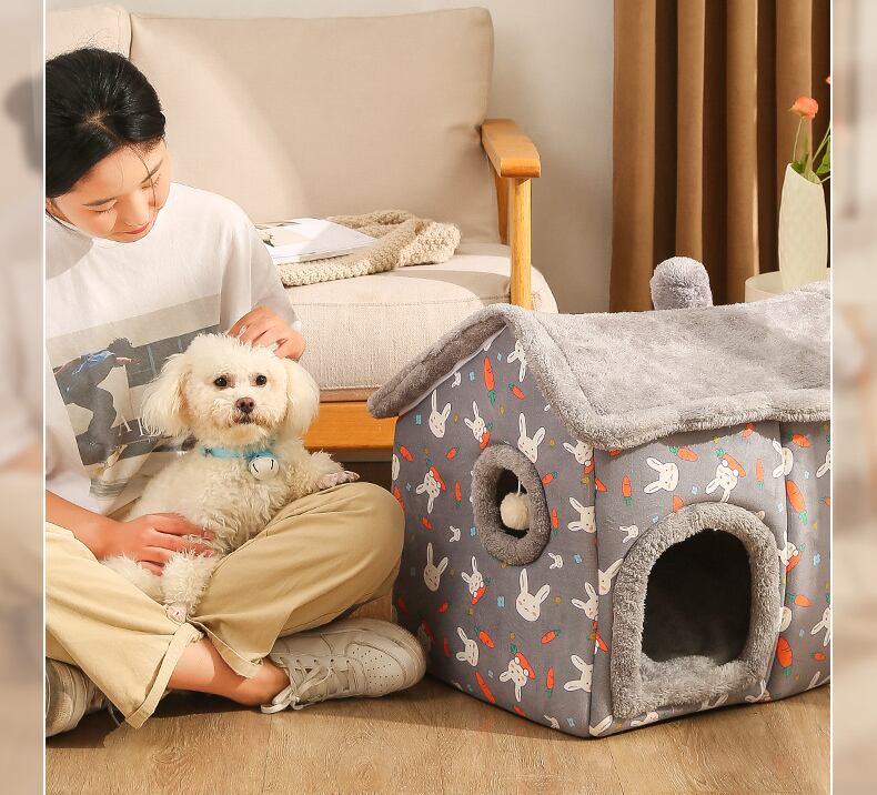 CAWAYI 犬小屋冬暖かいペット犬小屋のベッド PP 綿ソフト犬睡眠ベッド毛布クッション小中犬猫ペット用品