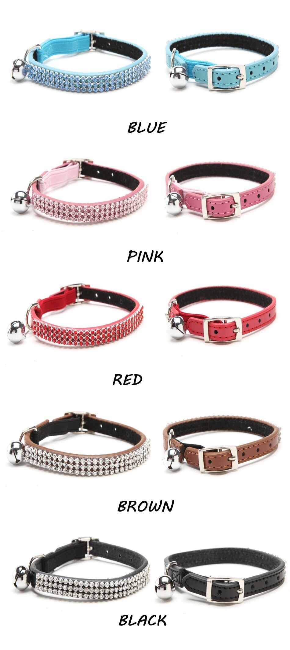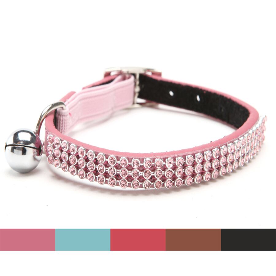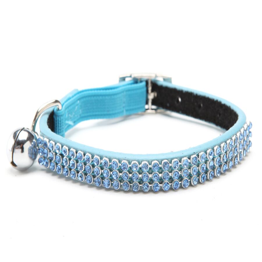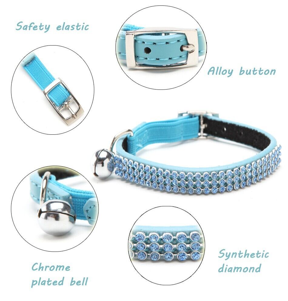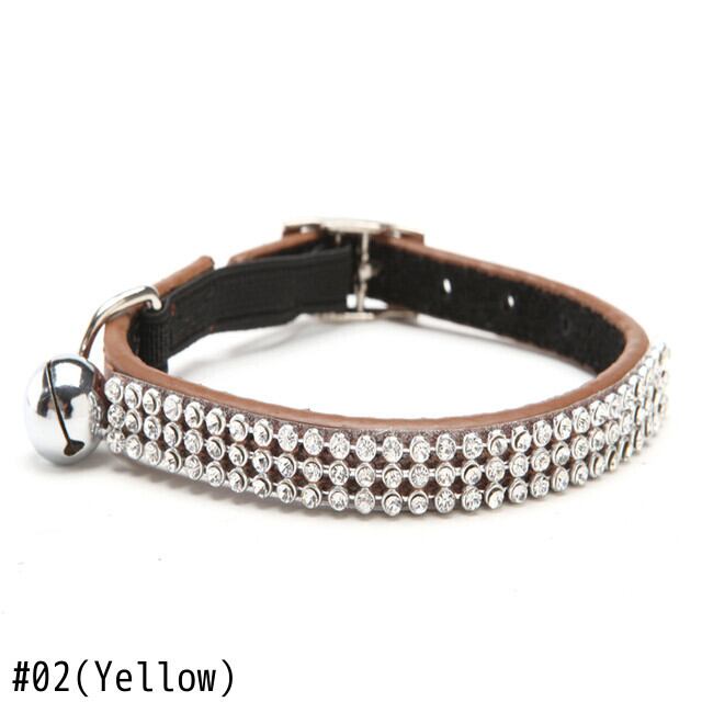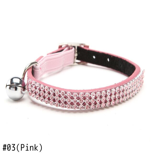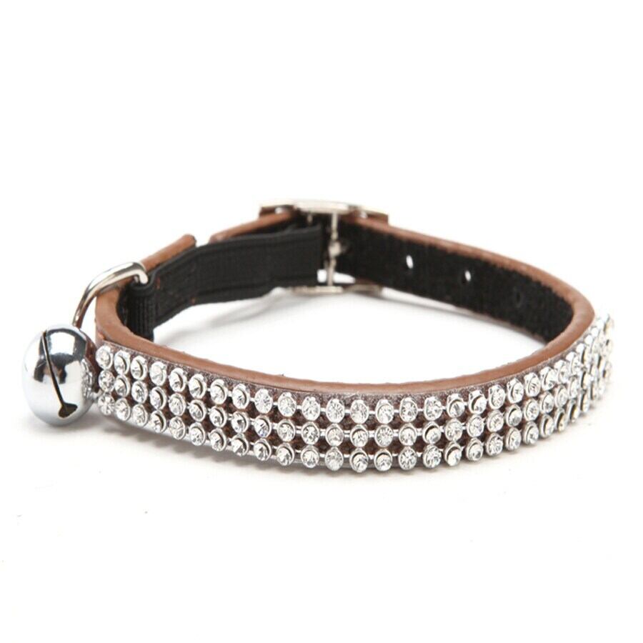送料無料猫の赤ちゃん子犬安全弾性調節可能なブリンブリンクリスタルラインストーンとベルリアルレザー子犬の首輪 S