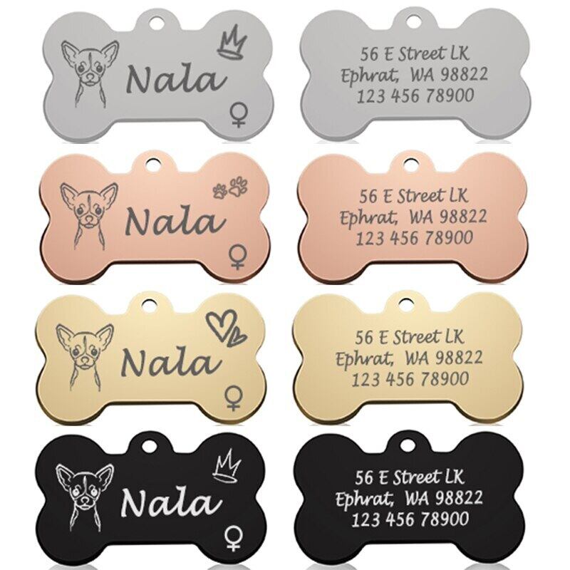 骨犬 ID タグ ペットの首輪ペンダント パーソナライズされた刻まれた犬の顔の名前猫子犬キーリング チャーム ネックレス アクセサリー性別