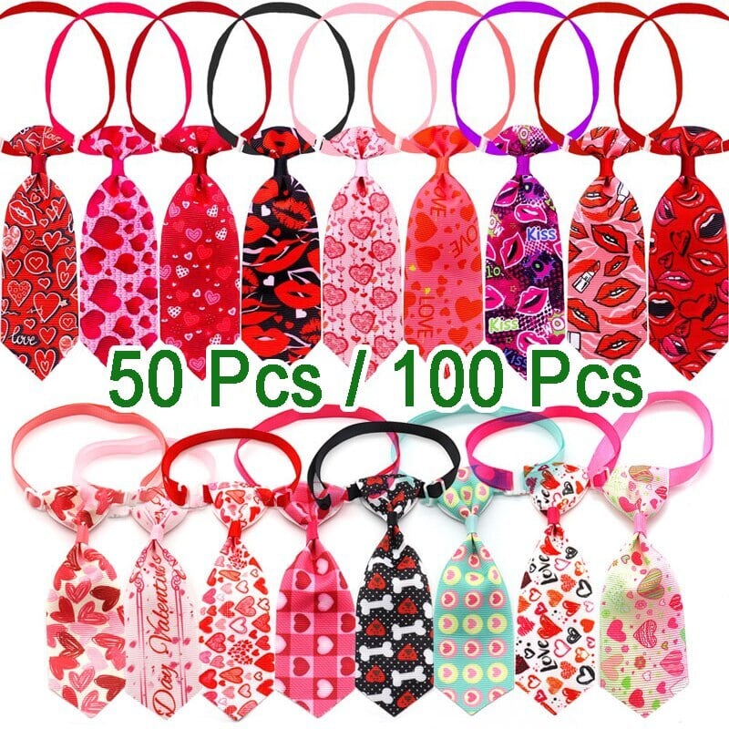 バレンタインデー 50/100 個犬ボウタイペット犬ネクタイラブハートネクタイ小中犬子犬ネクタイピンク弓グルーミング