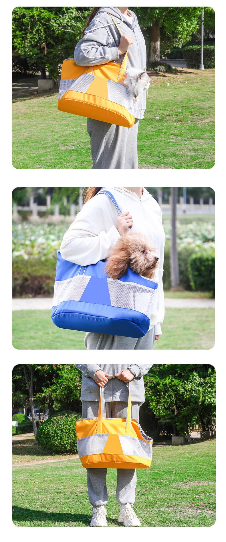 CAWAYI KENNEL 犬用バッグ 猫用キャリーバッグ ポータブル 四辺メッシュ 表面 通気性 ペットキャリア ハンドバッグ 旅行 子犬 子猫用バッグ