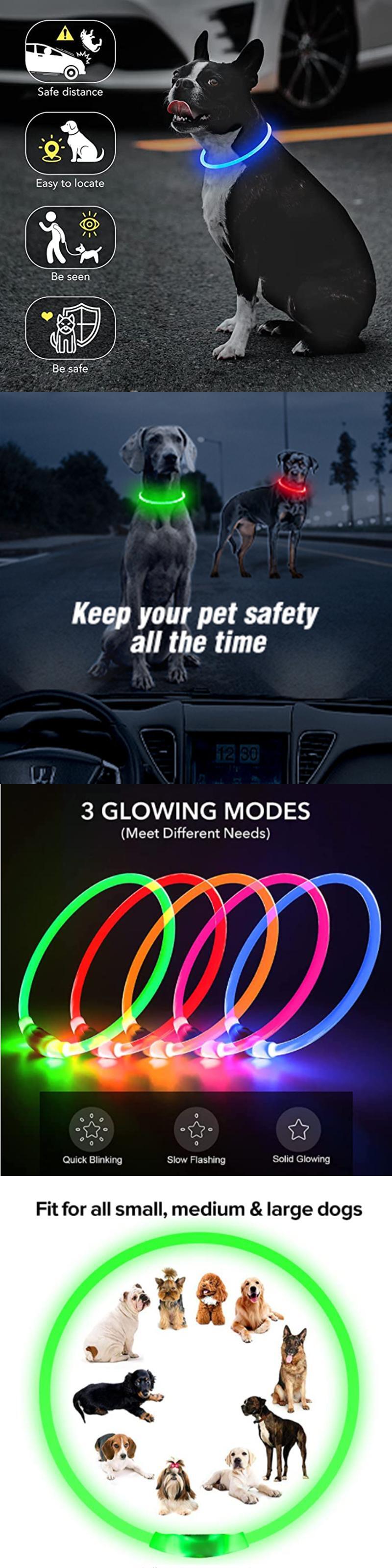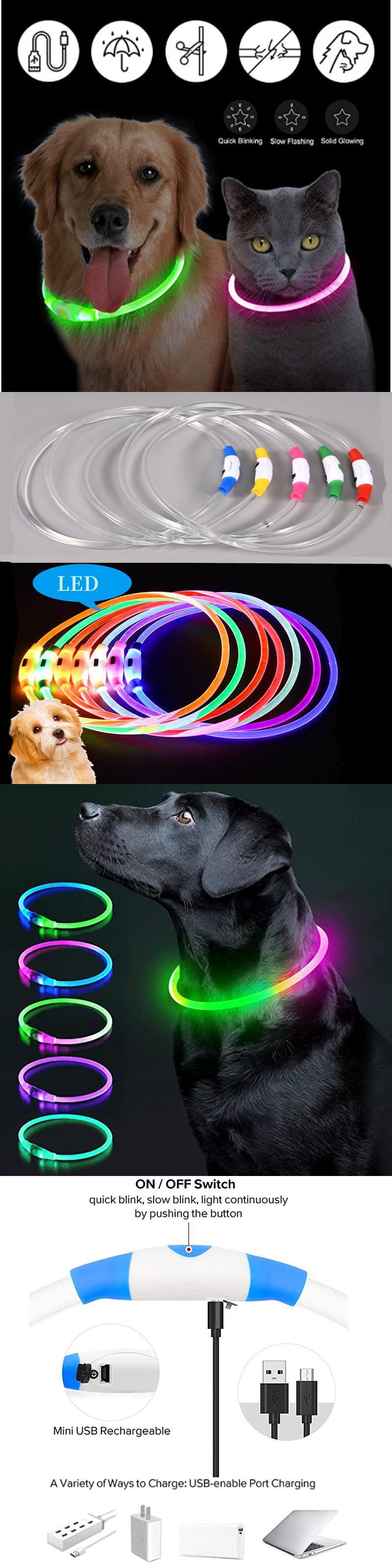 光る犬の首輪ライト充電猫のネックレス、LED点滅DIY光る安全首輪犬の夜間ペットアクセサリー
