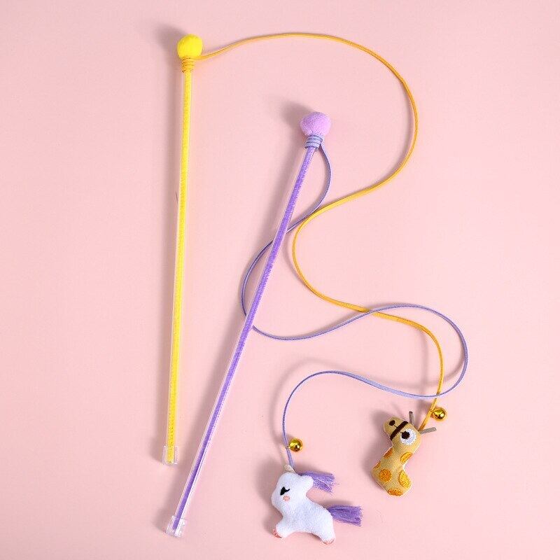 CAWAYI KENNEL 猫のティーザー 漫画 ぬいぐるみ 猫のおもちゃ ベル 面白い猫 スティック スプラウト ペット インタラクティブ ボーカル 子猫 遊ぶ ペット用品