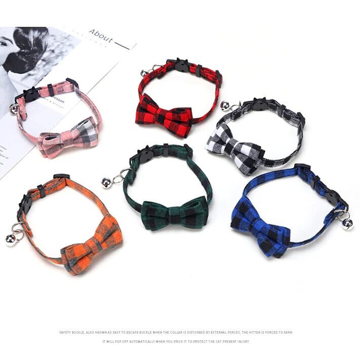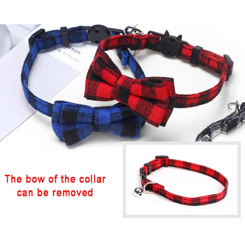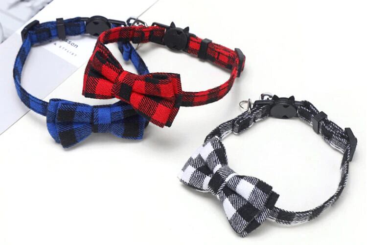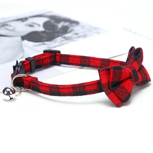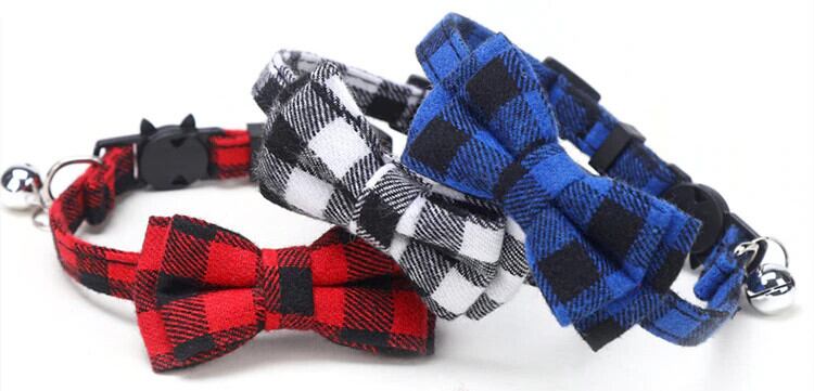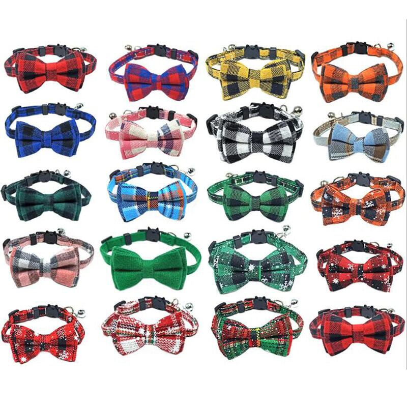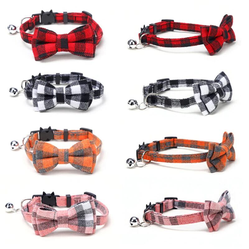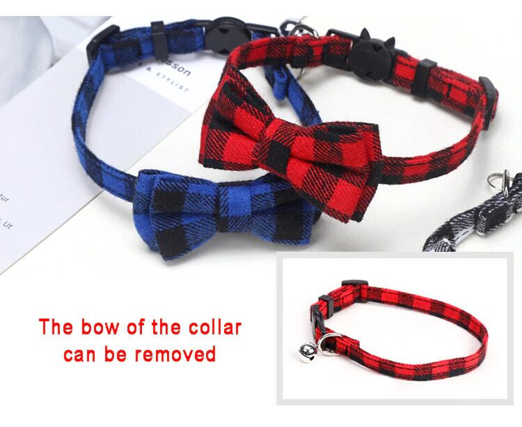 ちょう結び離脱猫の首輪蝶ネクタイ安全バックルチェック柄クリスマスチワワネックレス弾性調節可能な犬の首輪子犬