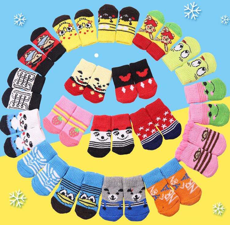 4 個かわいいペット猫犬靴下かわいい子犬ニット靴下滑り止めスキッド底