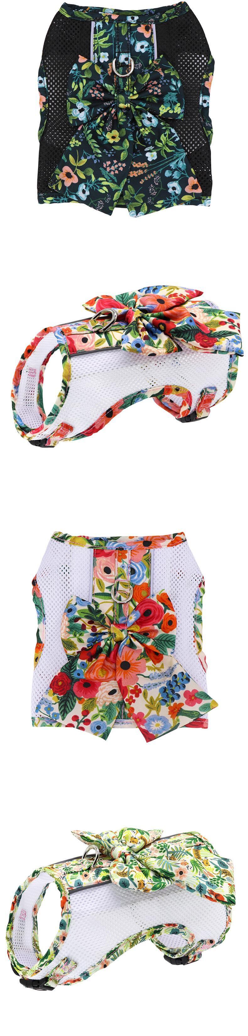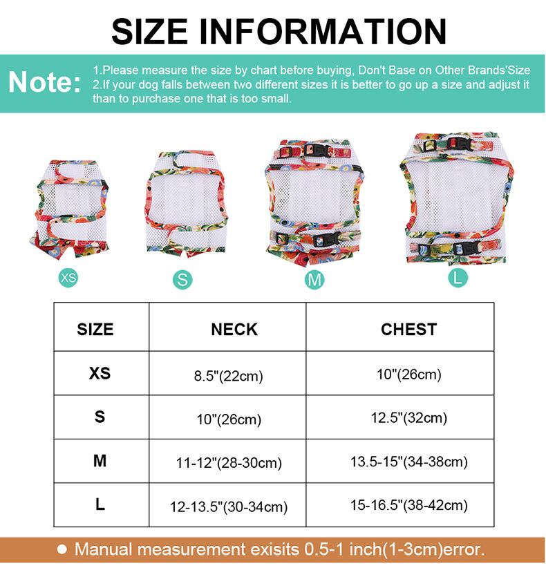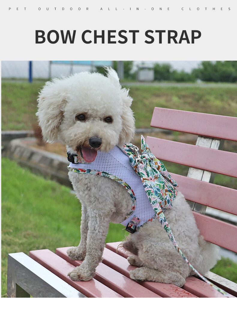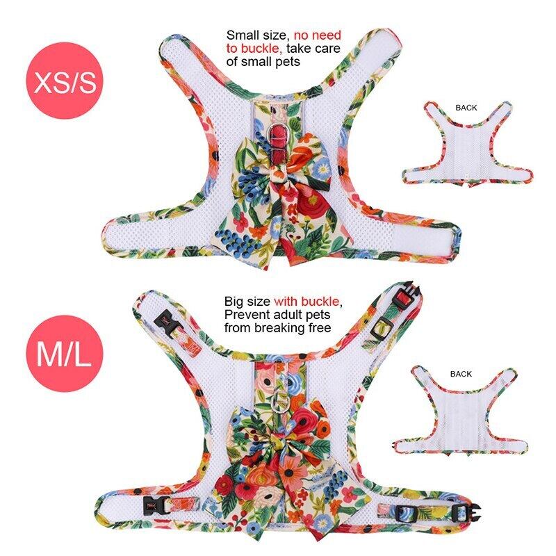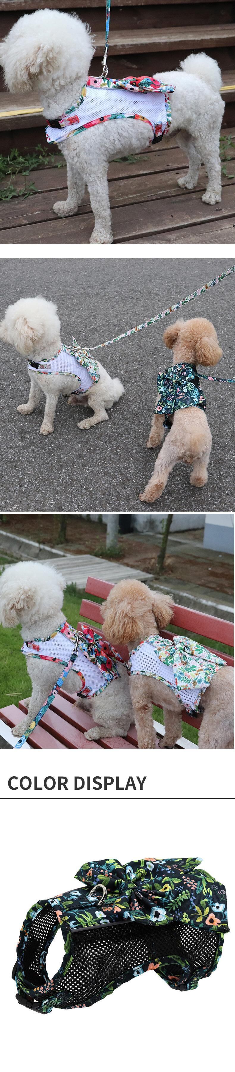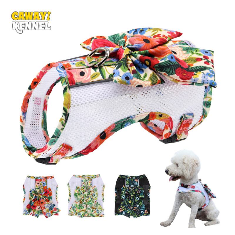 CAWAYI KENNEL 花柄プリント 犬用ベスト ハーネス リーシュ 調整可能 子犬用ハーネス メッシュ 通気性 小中型犬 猫用品