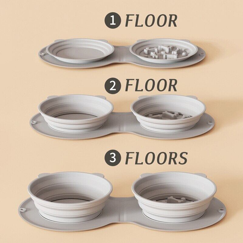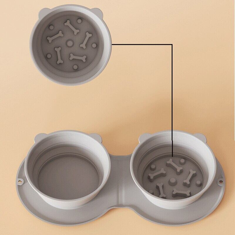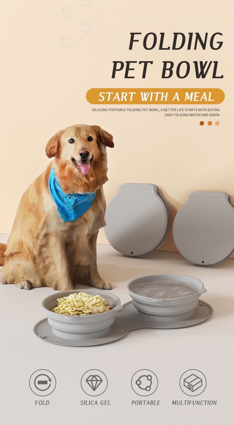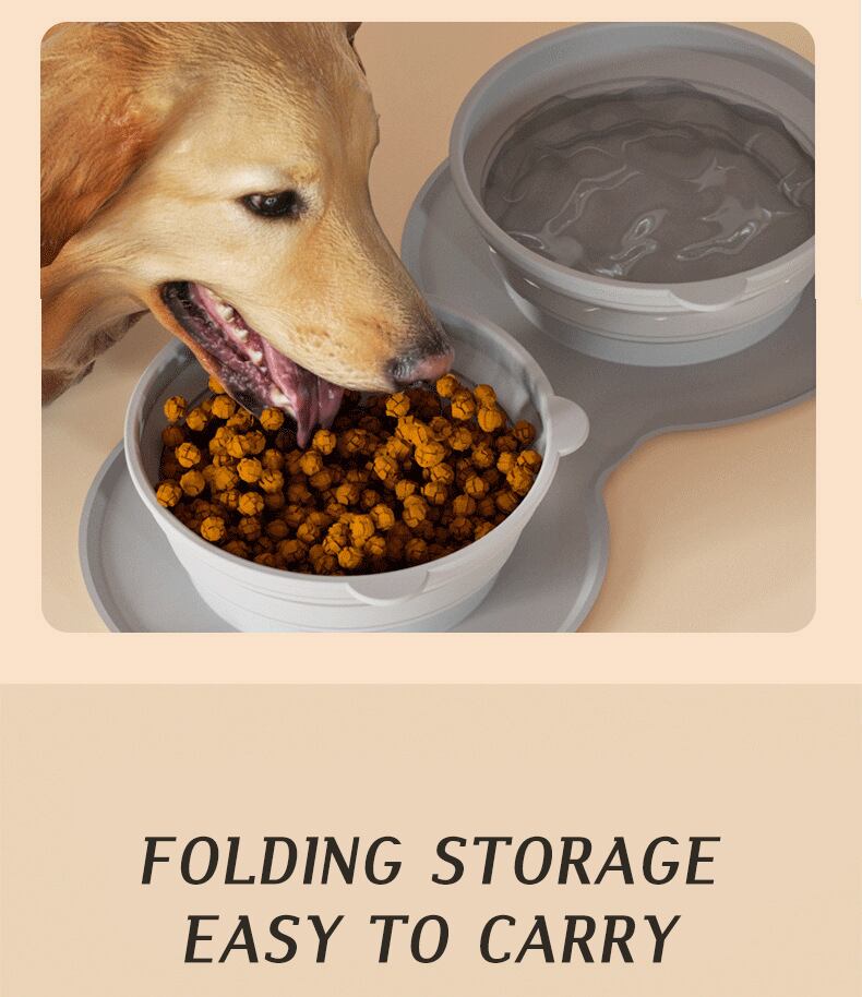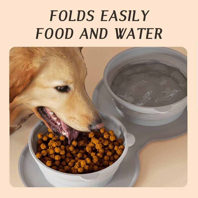 CAWAYI KENNEL 折りたたみ式犬ダブルボウル 滑り止めマット付き ポータブル シリコン 子犬 トラベルボウル 小型大型犬 ペットフィーダー