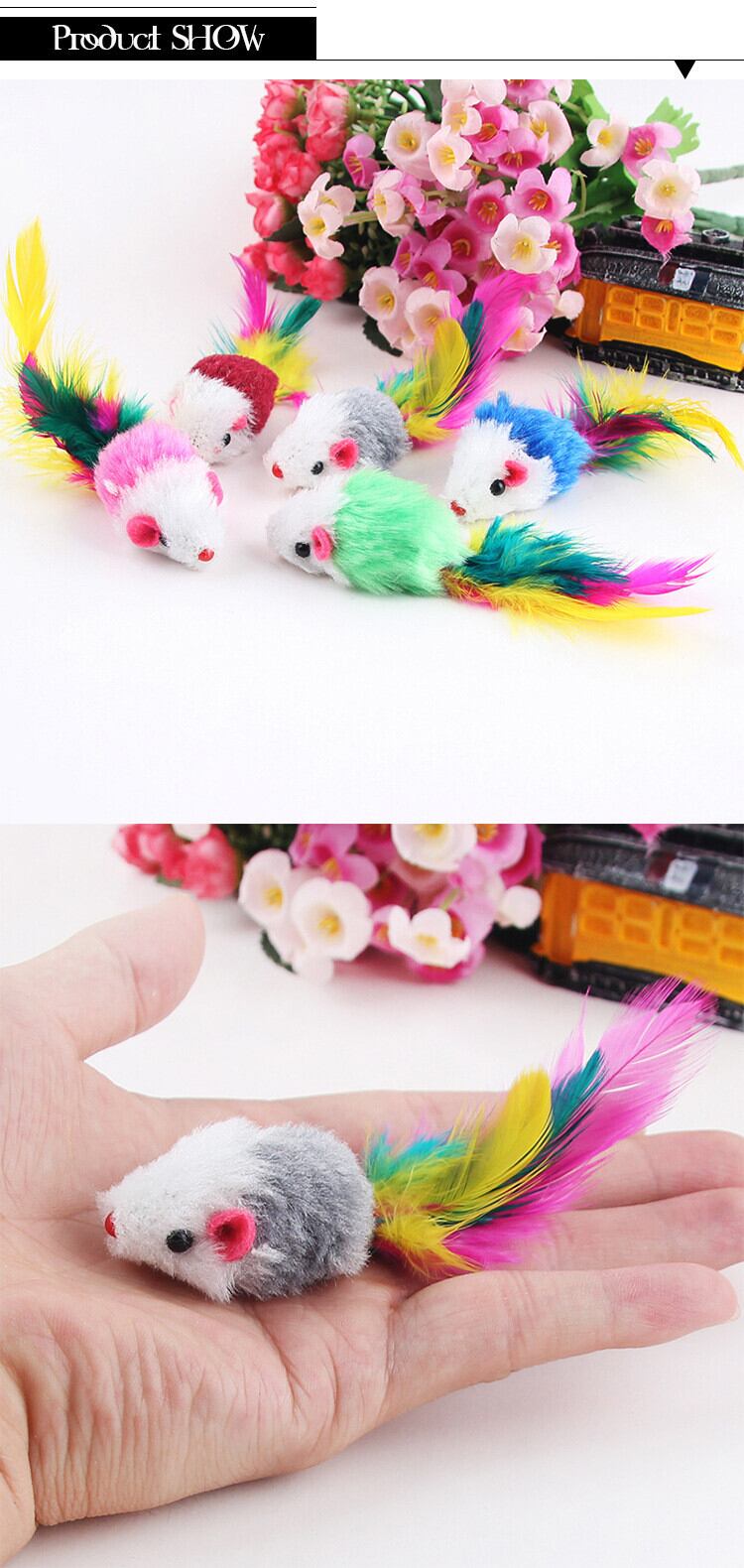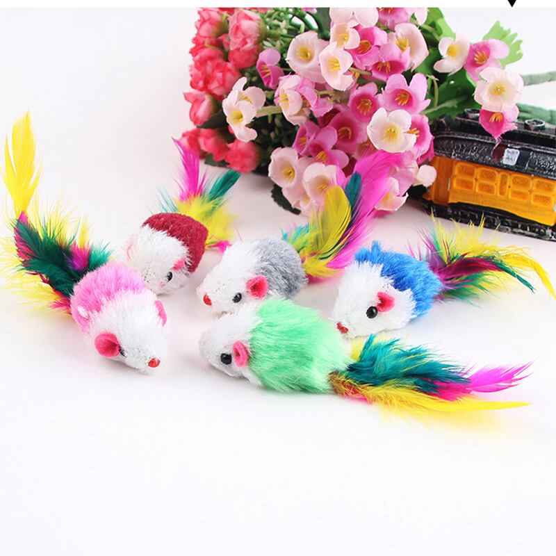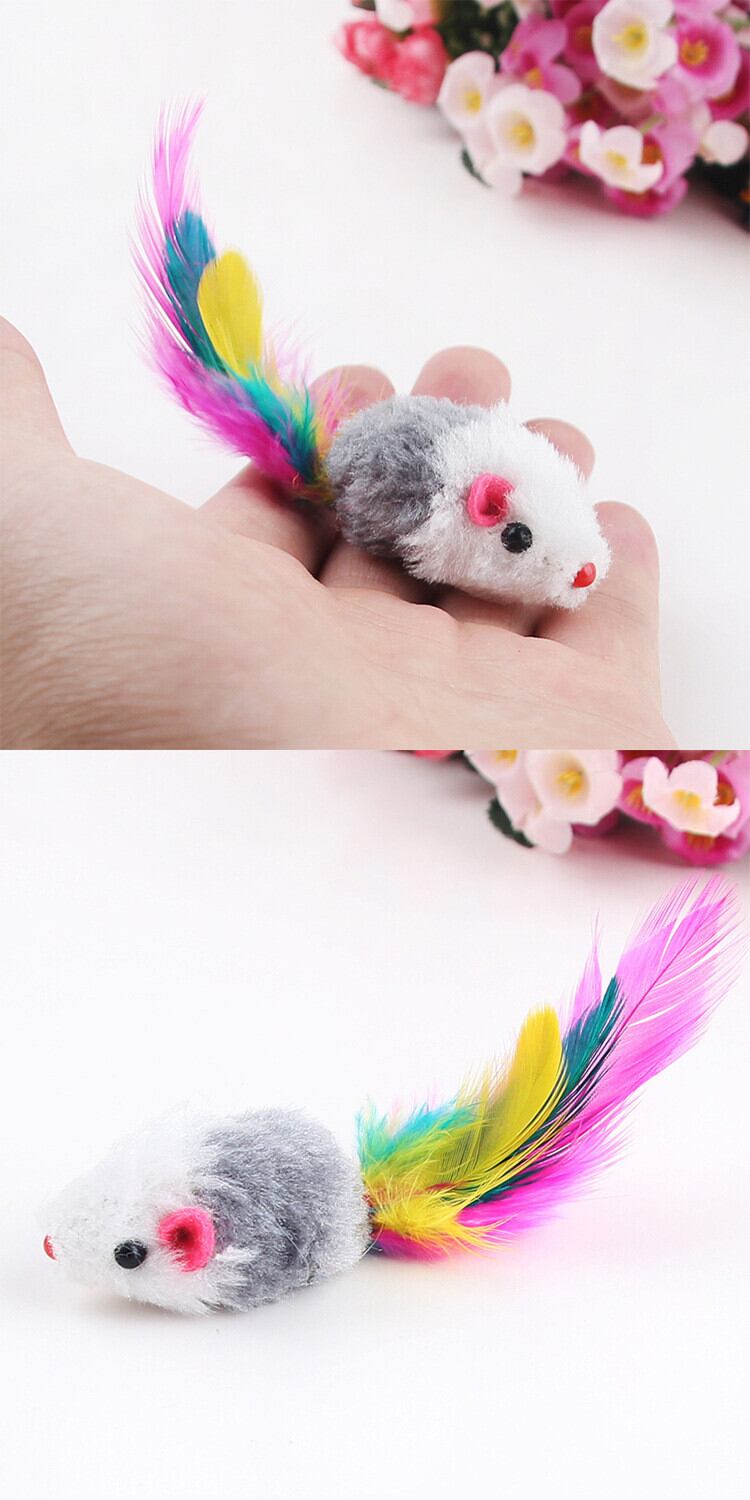 ホット 10 ピース/ロットソフトフリース偽マウス猫のおもちゃカラフルな羽おかしい再生おもちゃ猫子猫ランダムに色