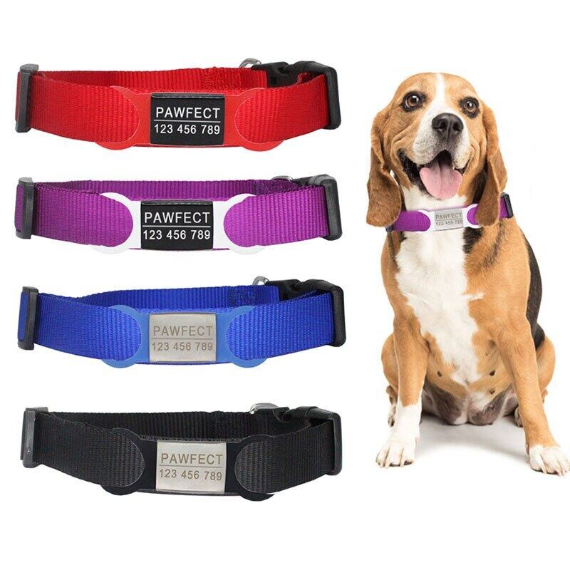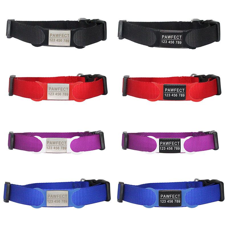 カラフルなパーソナライズされたカスタマイズされた ID ナイロン犬の首輪無料彫刻ステンレス鋼調節可能な首輪ミディアム ネックレス