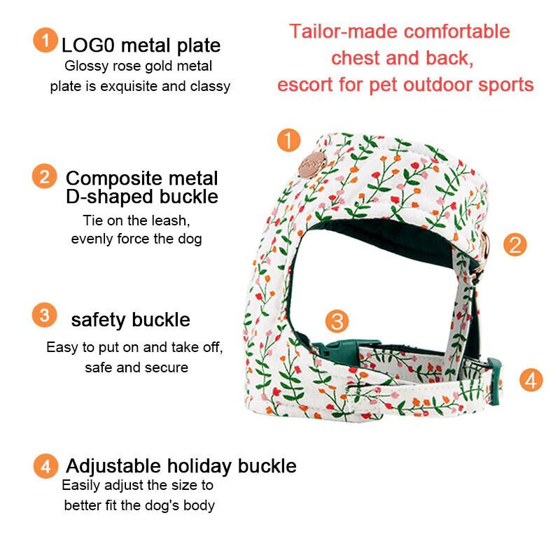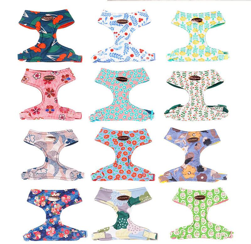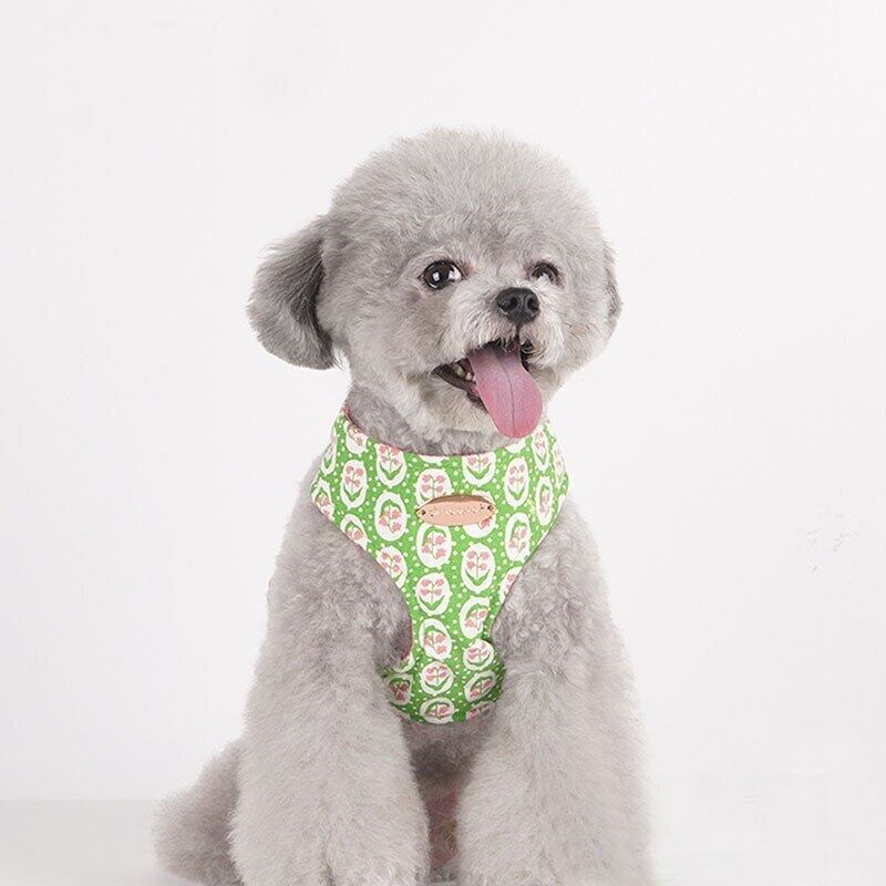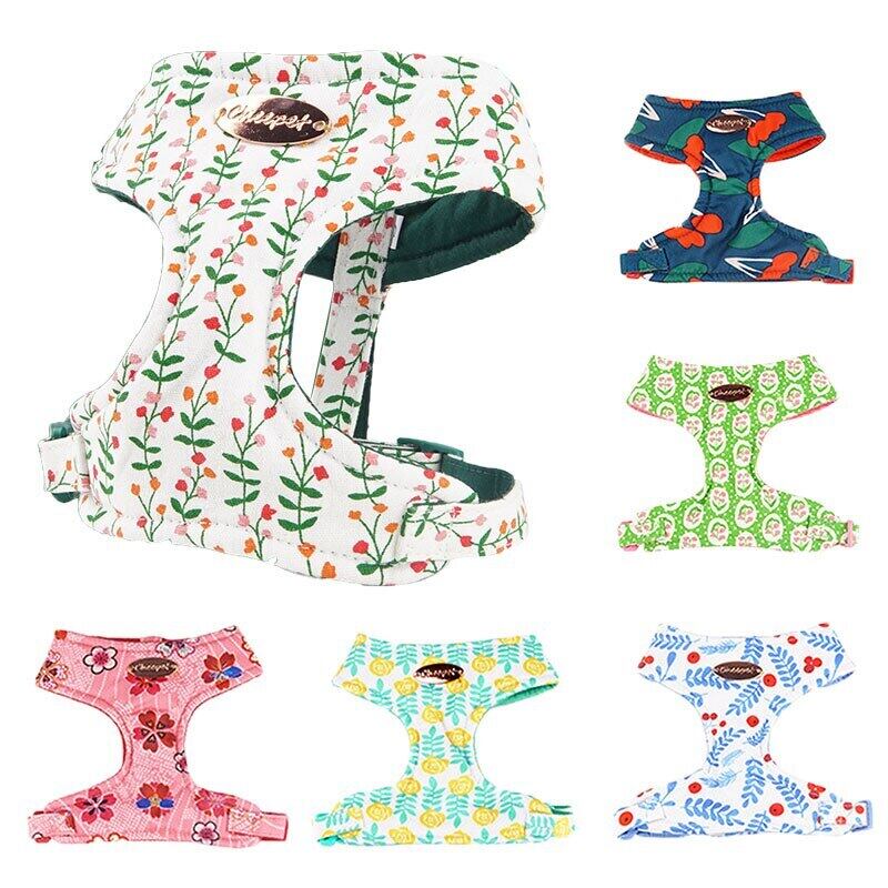 花ペット犬ハーネスナイロン犬胸ストラップ通気性調整可能なペットの首輪小中犬猫チワワウォーキングトレイン