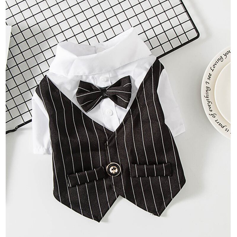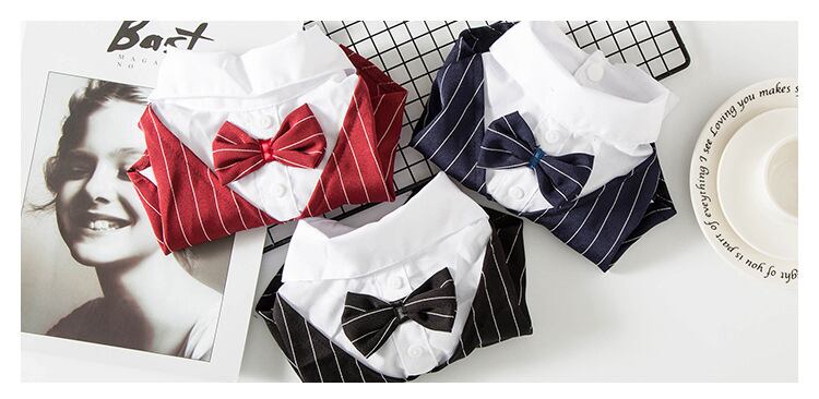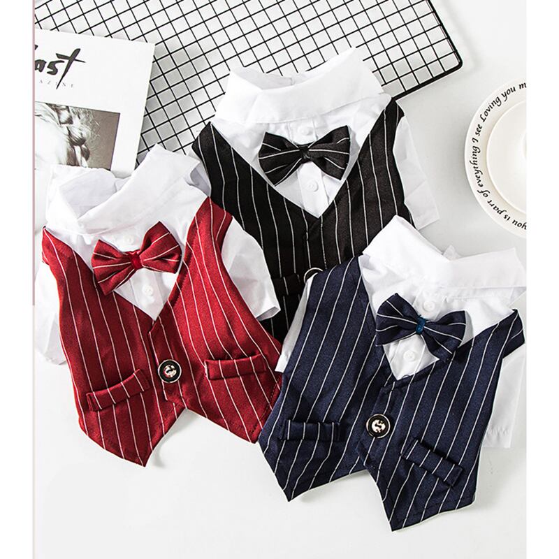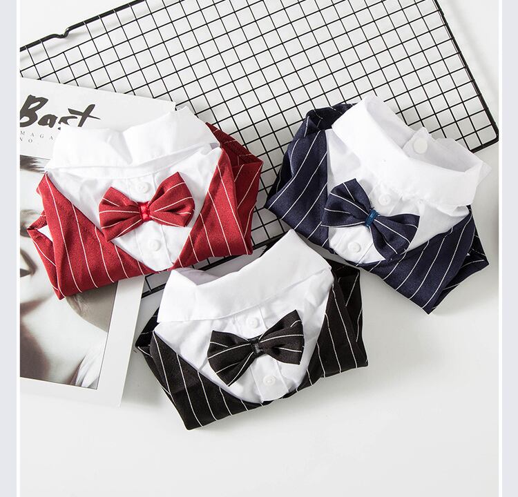 弓スーツネクタイペット子犬服シャツ Tシャツ服夏小中犬春
