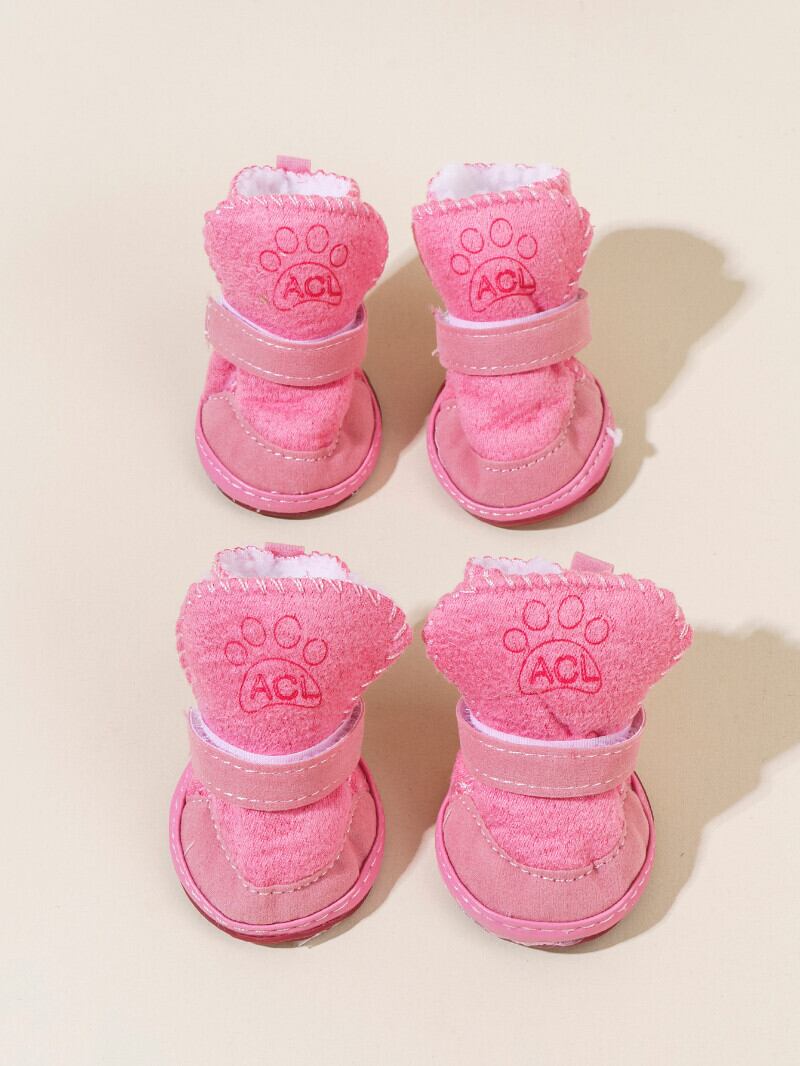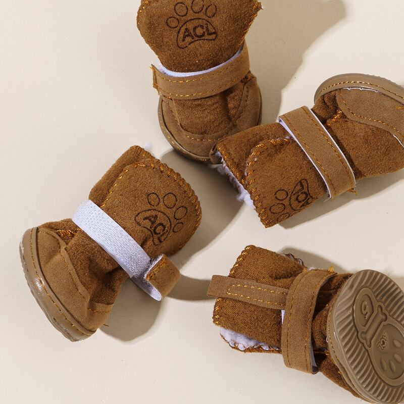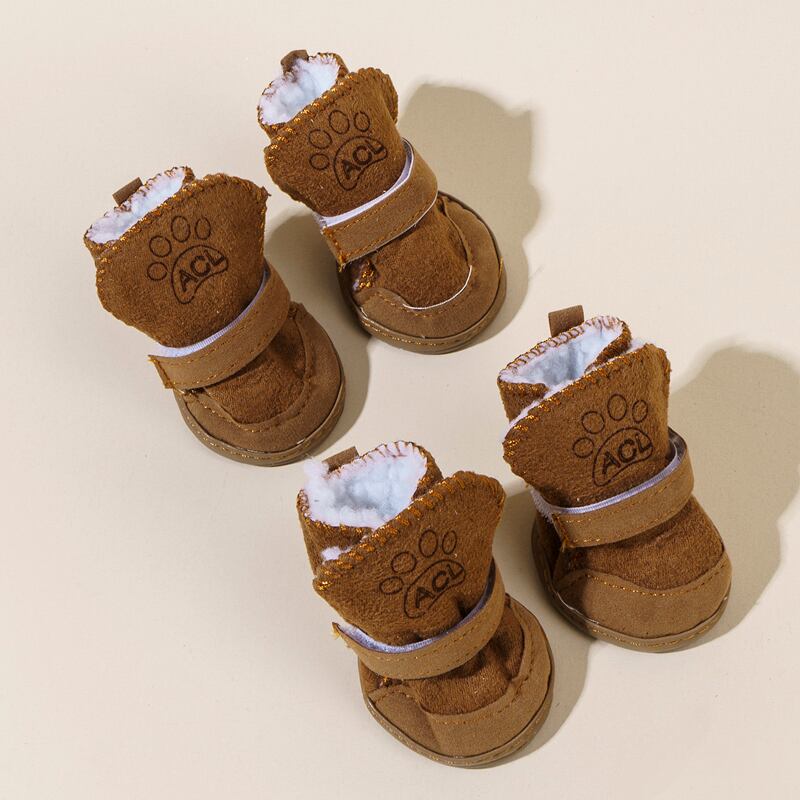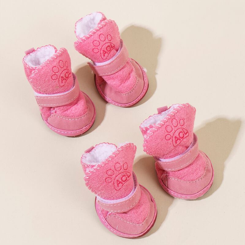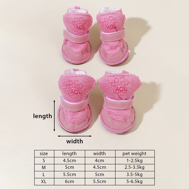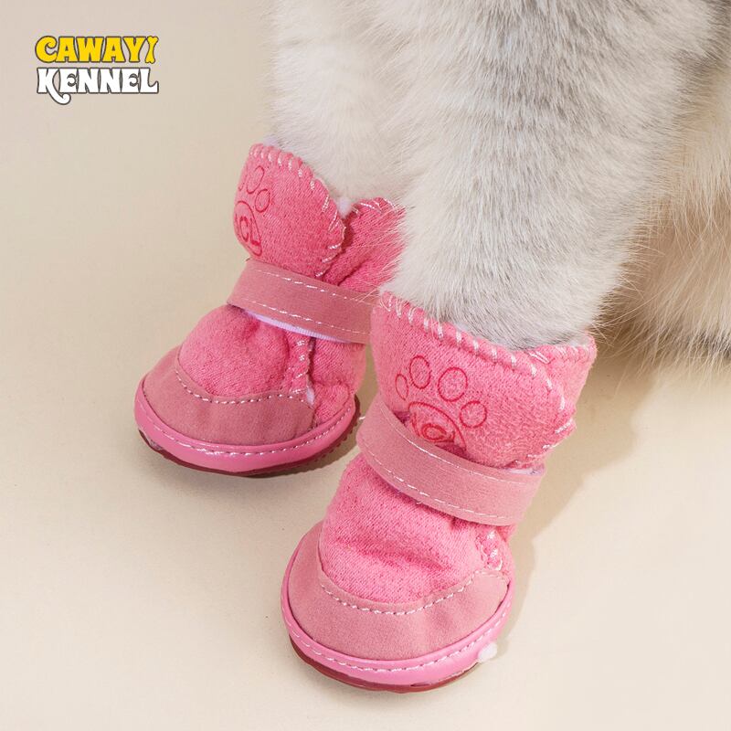 CAWAYI 犬小屋冬暖かい 4 ピース/セット滑り止め子犬の靴フリースペット犬抗スリップ雨雪ブーツ靴厚手の靴下ブーツ