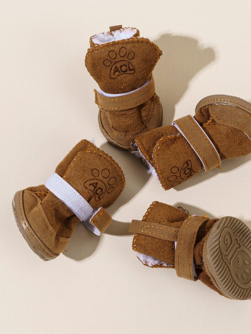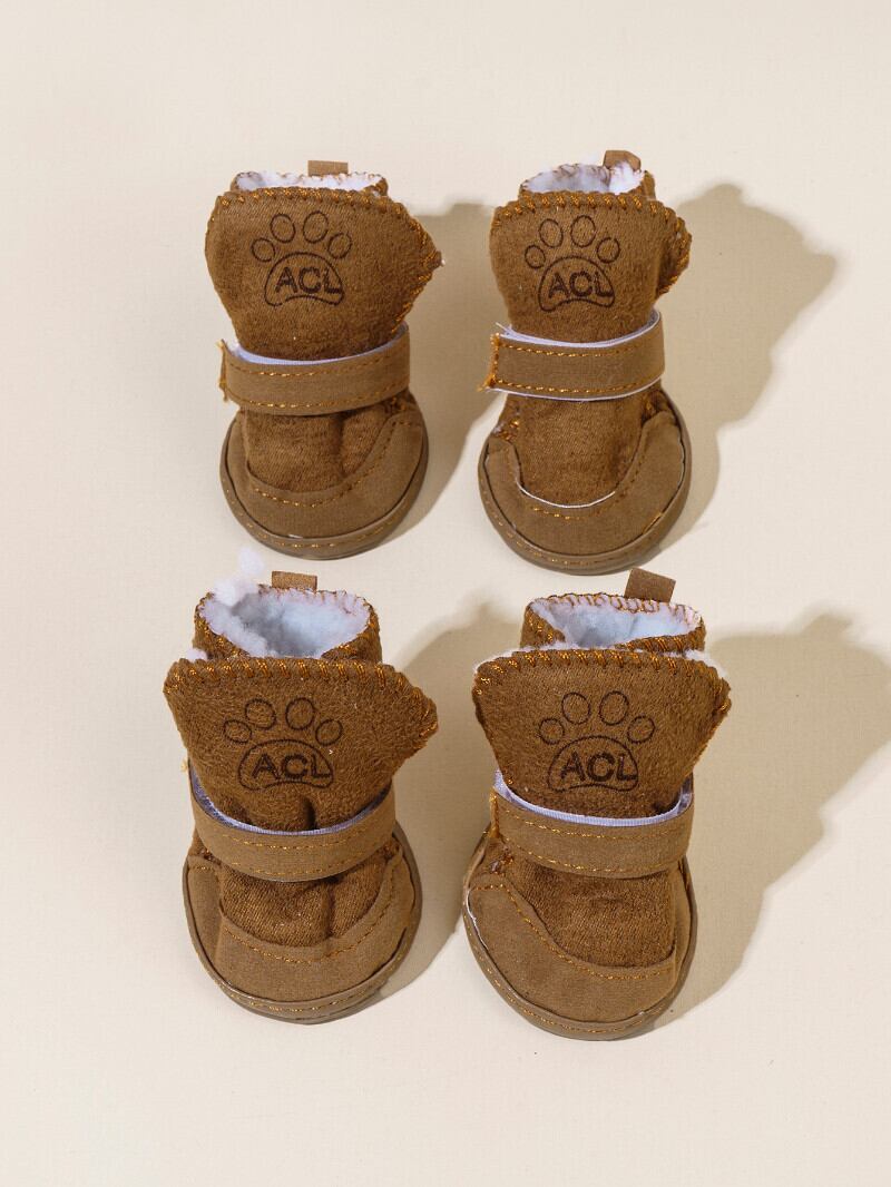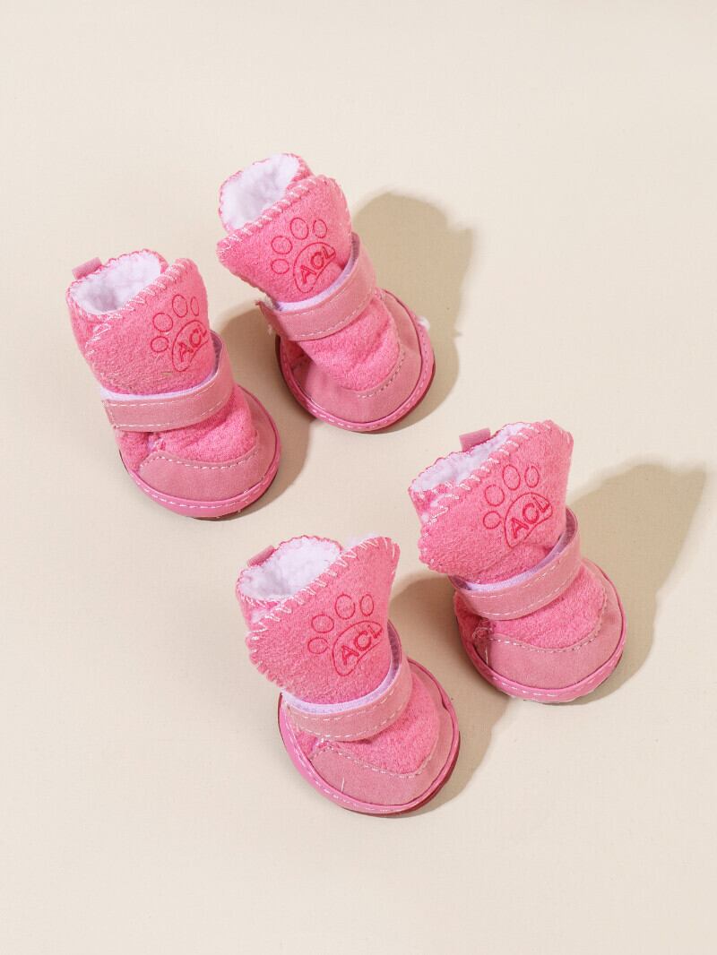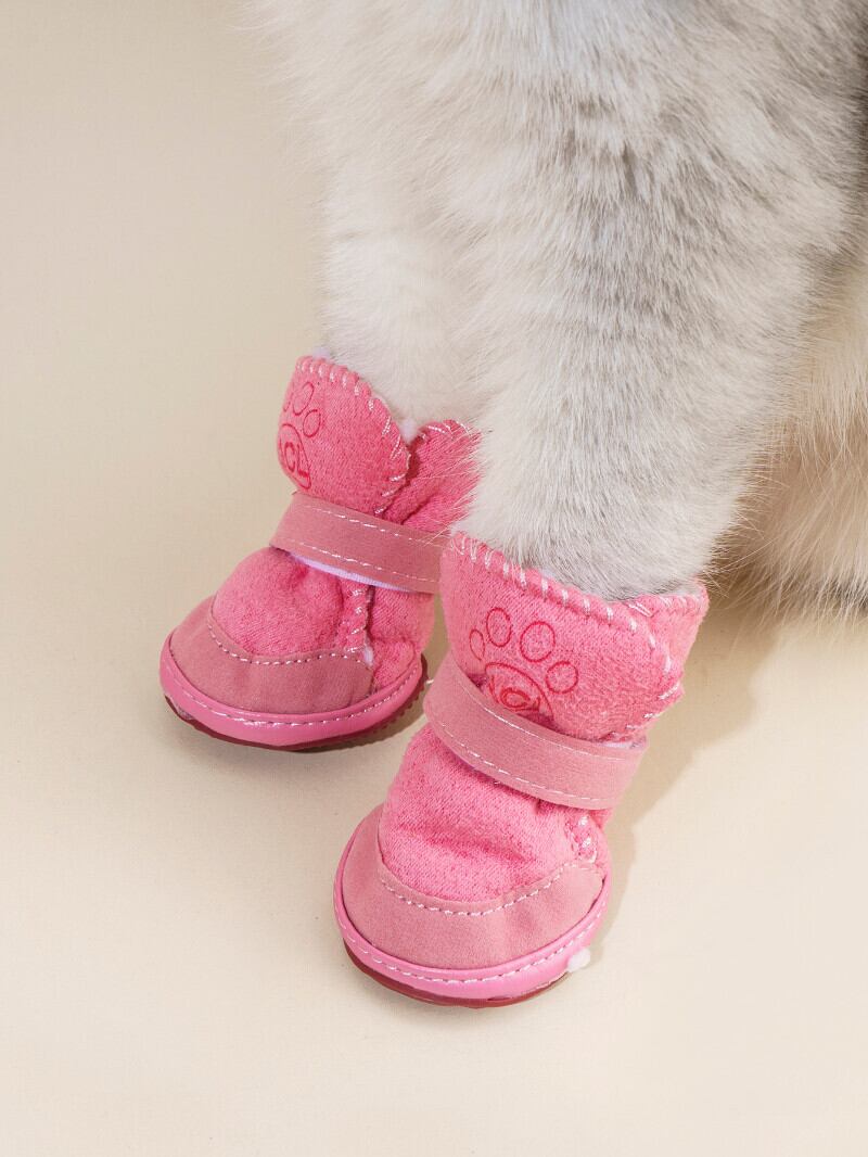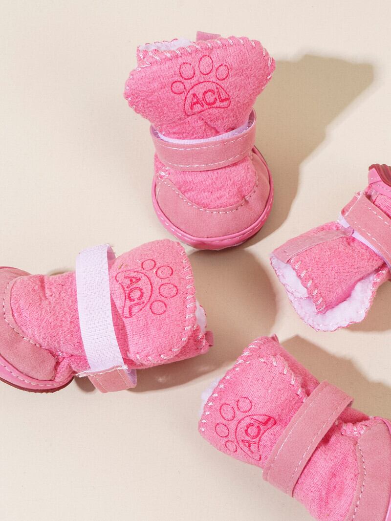 CAWAYI 犬小屋冬暖かい 4 ピース/セット滑り止め子犬の靴フリースペット犬抗スリップ雨雪ブーツ靴厚手の靴下ブーツ