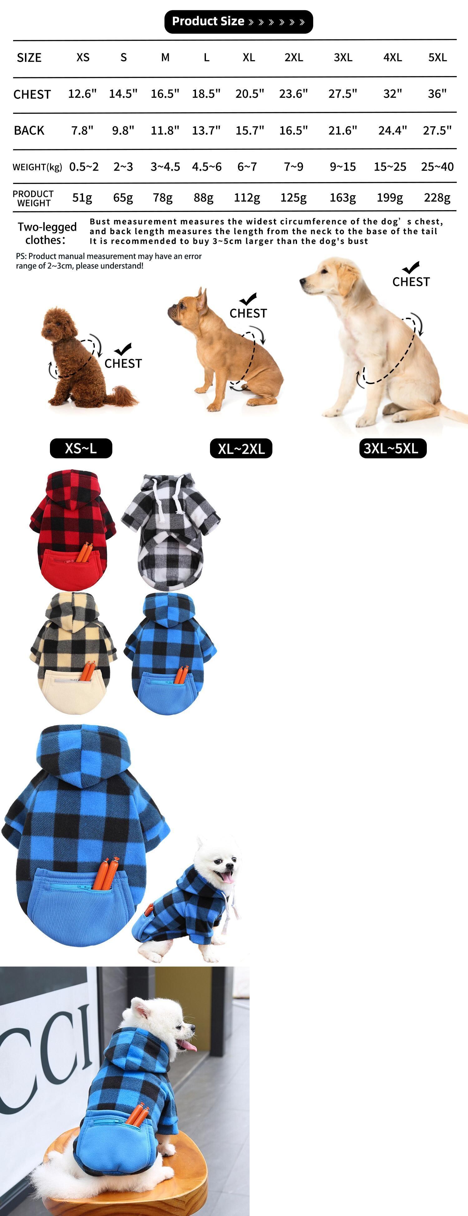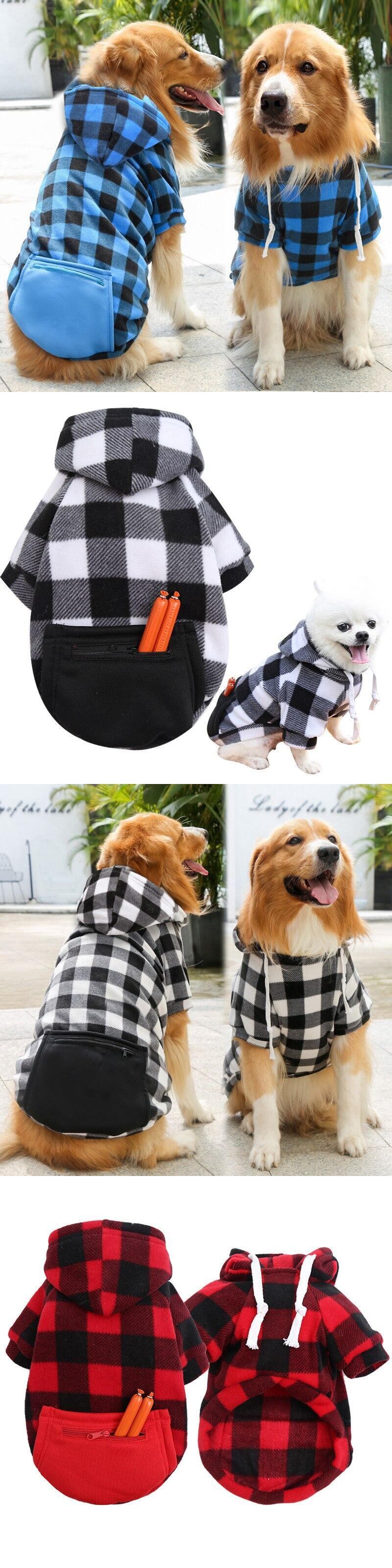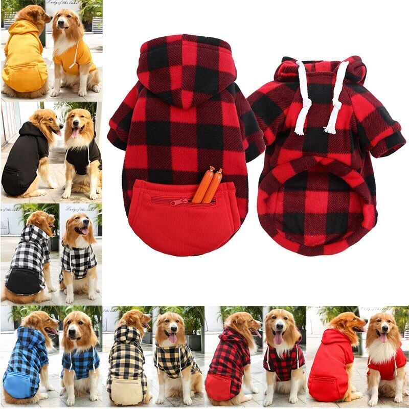 チェック柄ペット犬服パーカー衣装小型犬セーター冬暖かい子犬猫コートジャケット小大チワワ