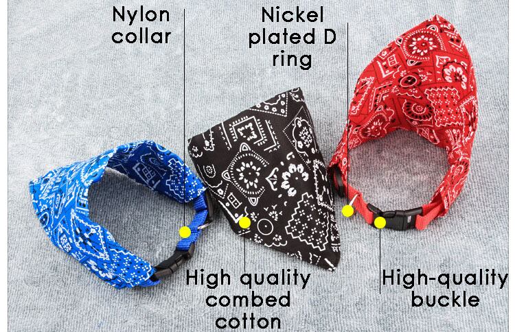 ペットスカーフ首輪調節可能なナイロン首輪とコーマ綿三角バンダナ装飾よだれかけ猫子犬ペットアクセサリー