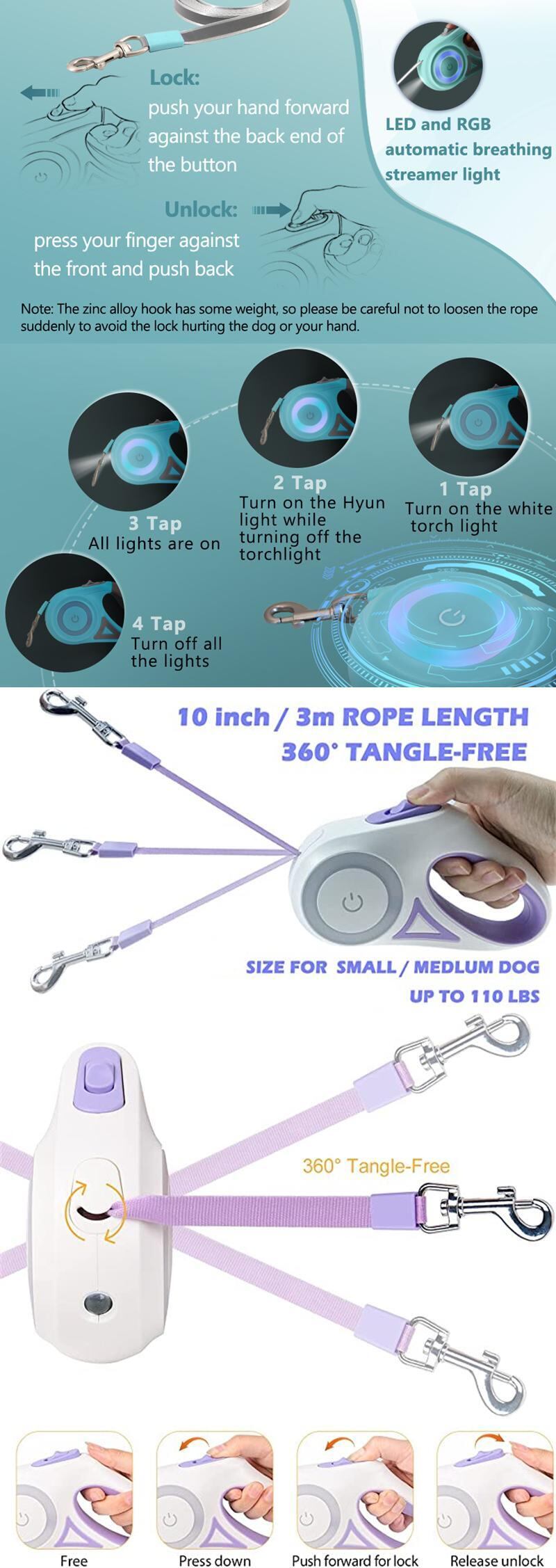 3/5 メートル Led ライトリトラクタブルリーシュペット犬リーシュ夜間安全自動延長リード大中型犬猫ウォークランリーシュペット