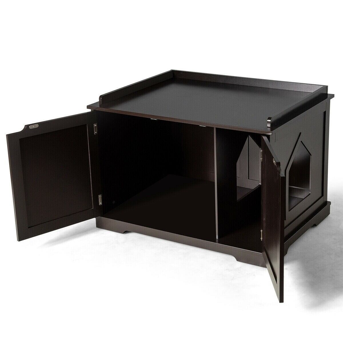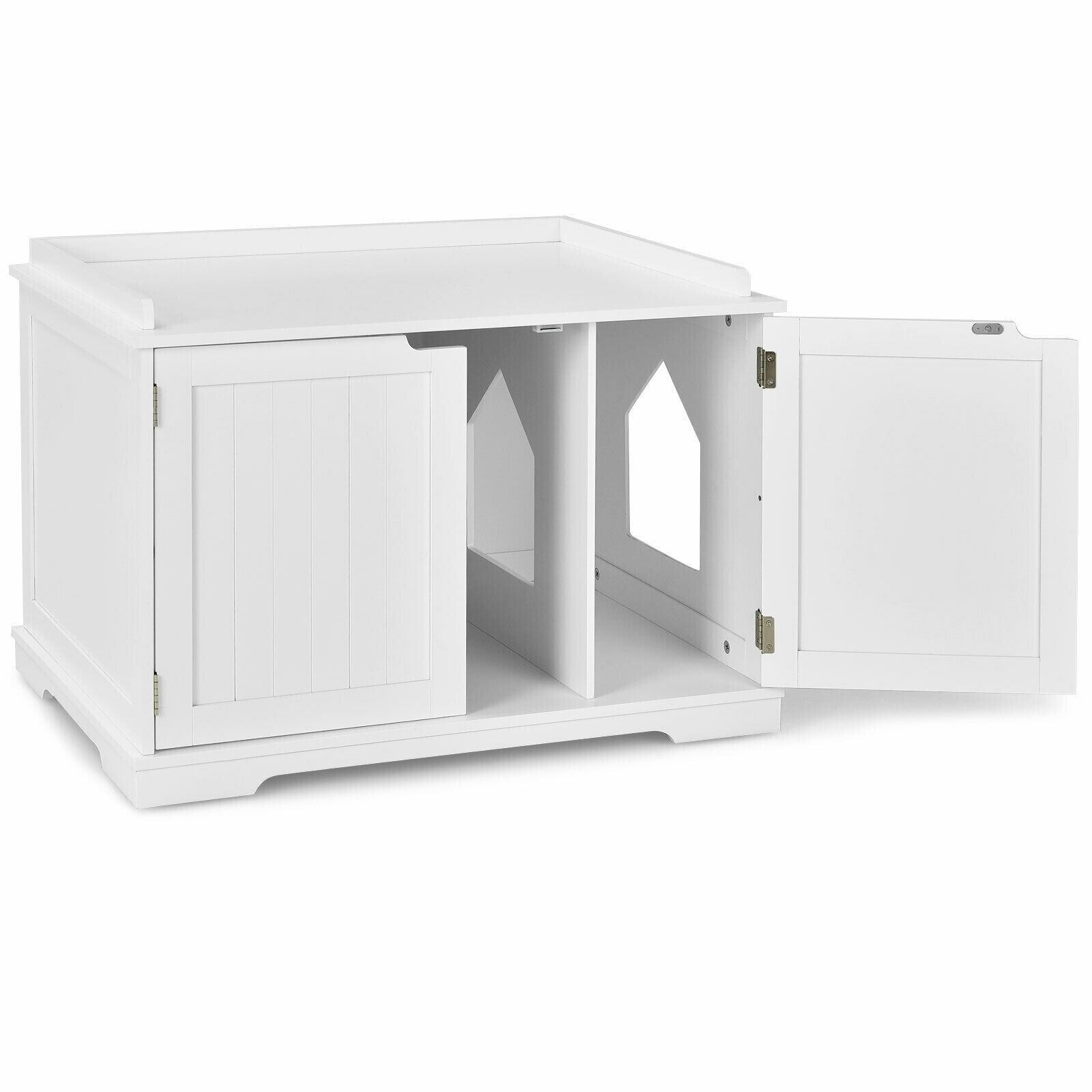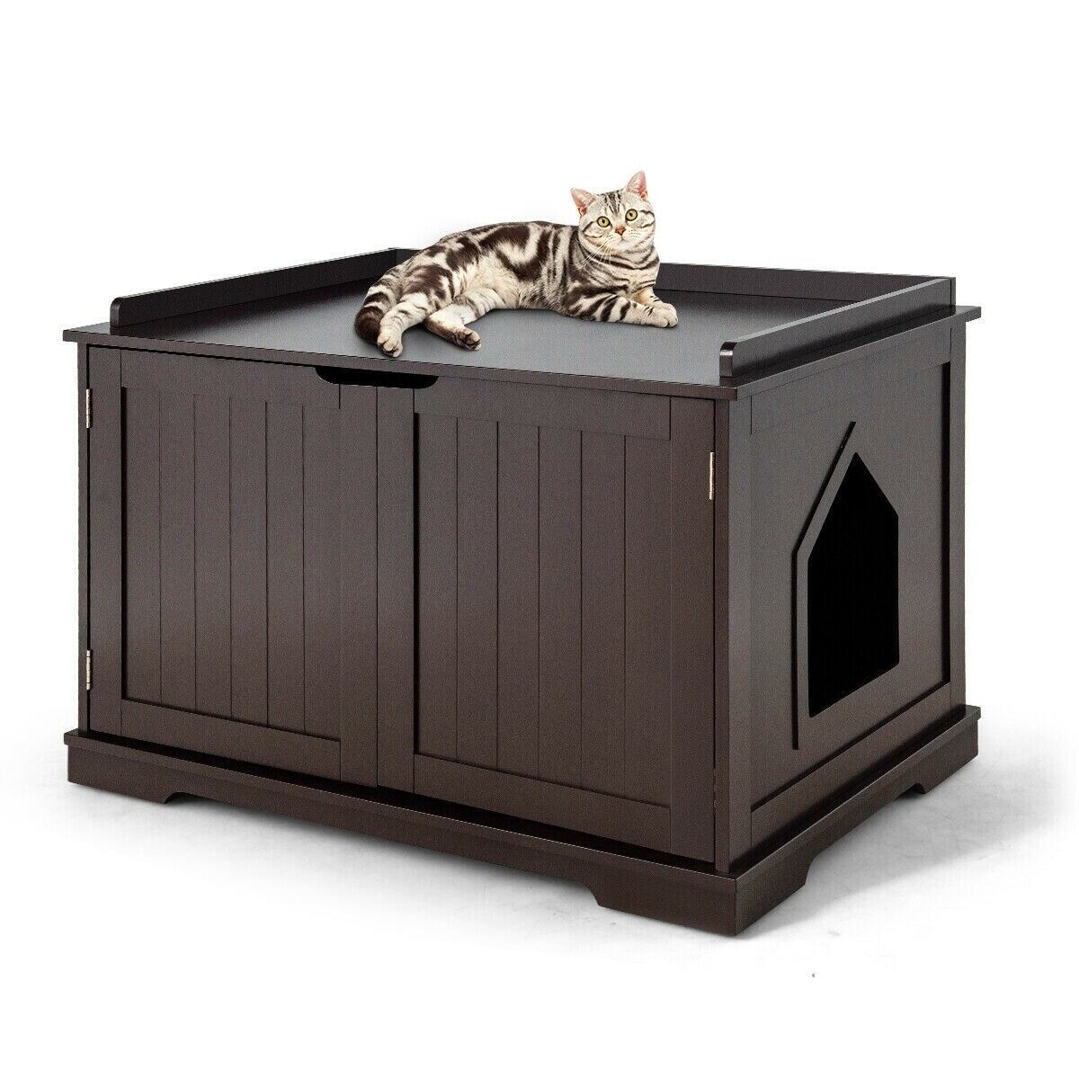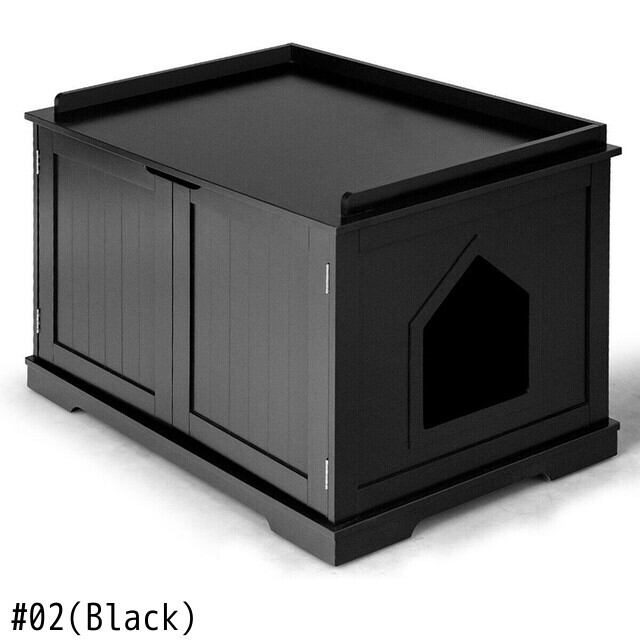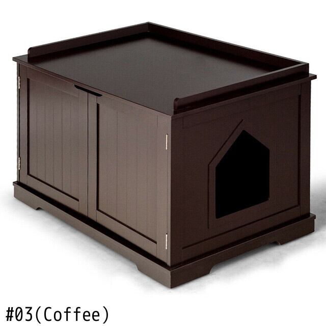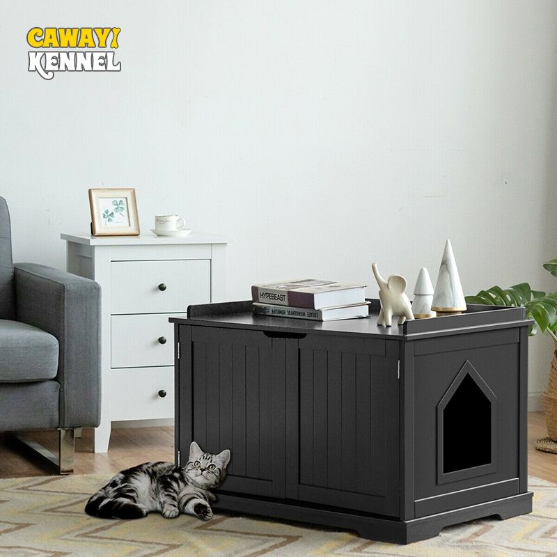頑丈な木製猫用ベッドパン トイレ エンクロージャー 両開きドア付き 大型猫とキティハウス 猫穴 マグネットドア HW65619