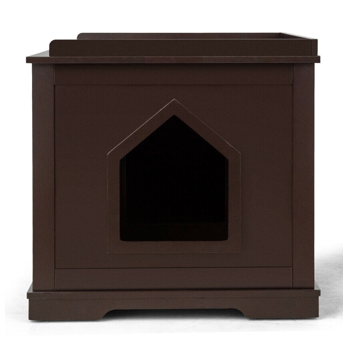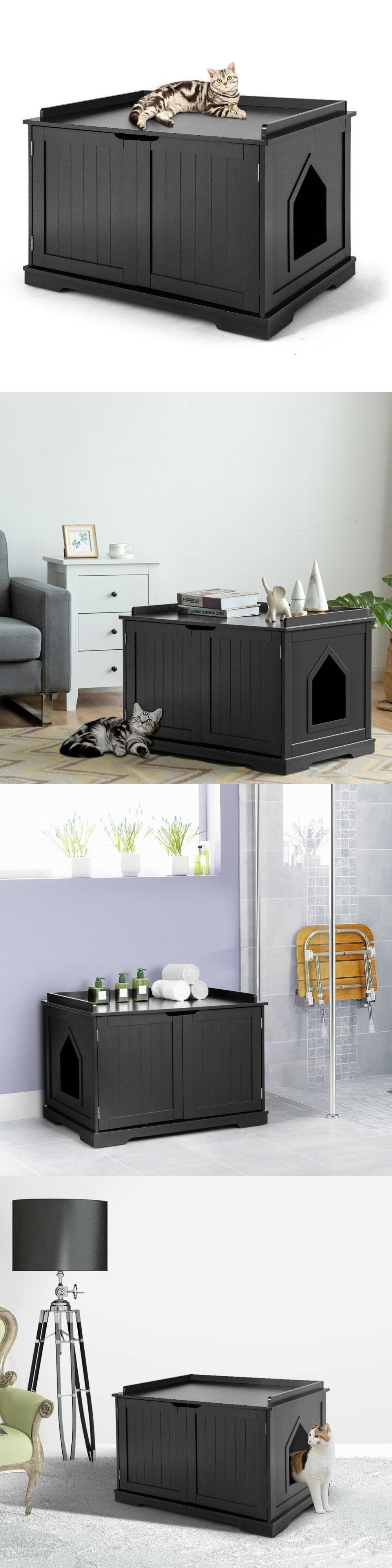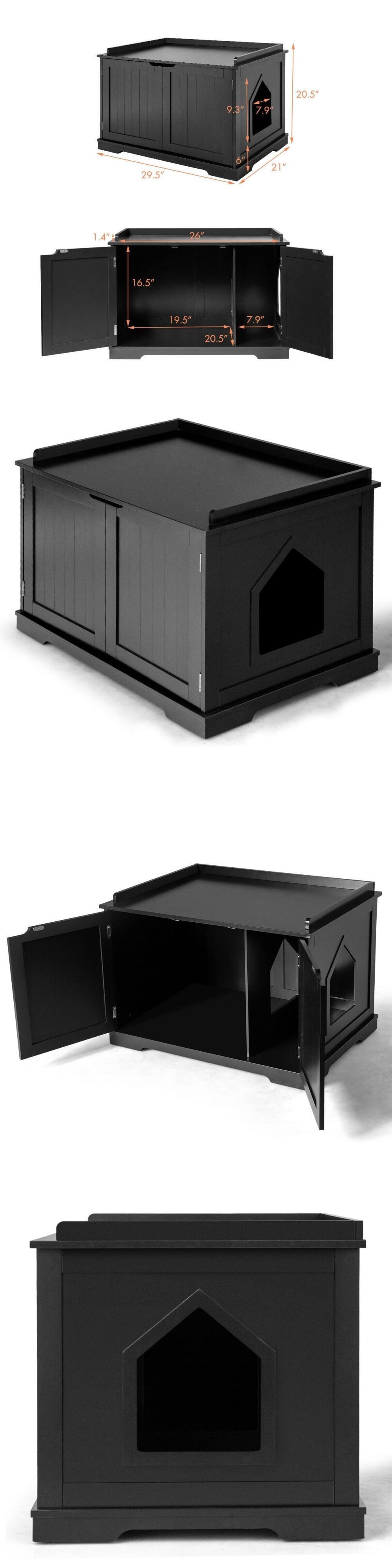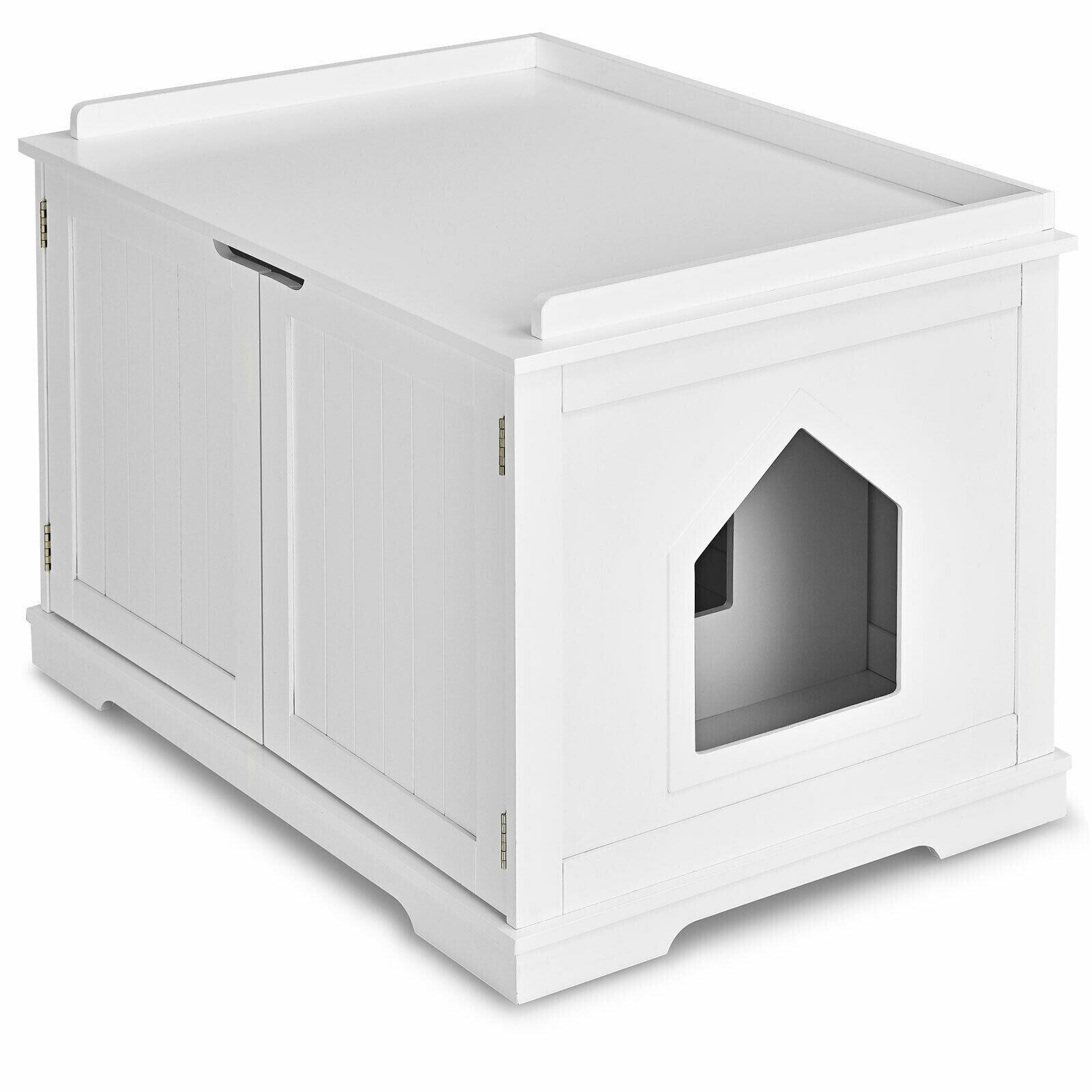 頑丈な木製猫用ベッドパン トイレ エンクロージャー 両開きドア付き 大型猫とキティハウス 猫穴 マグネットドア HW65619