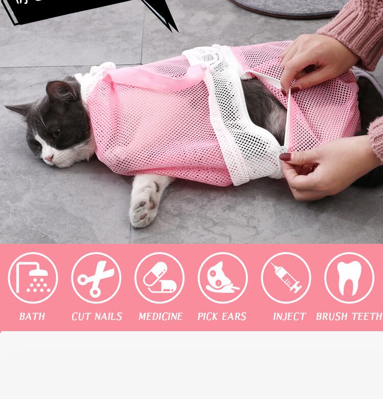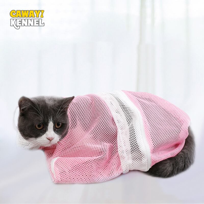 CAWAYI KENNEL 猫用入浴バッグ 猫グルーミングシャワーネット 調節可能な拘束バッグ 傷防止 爪切り 耳掃除