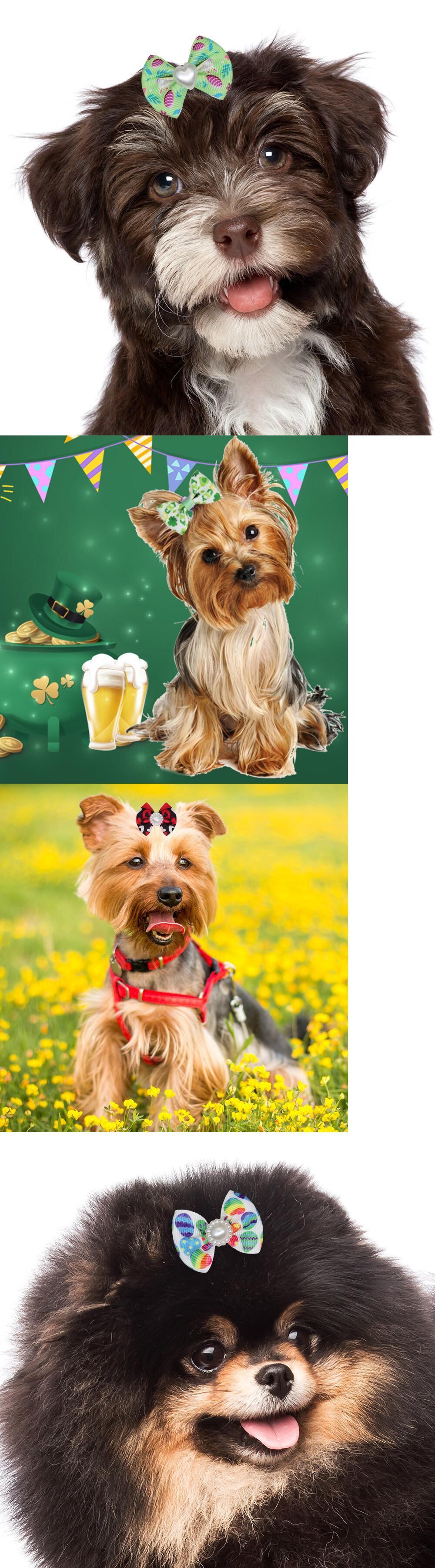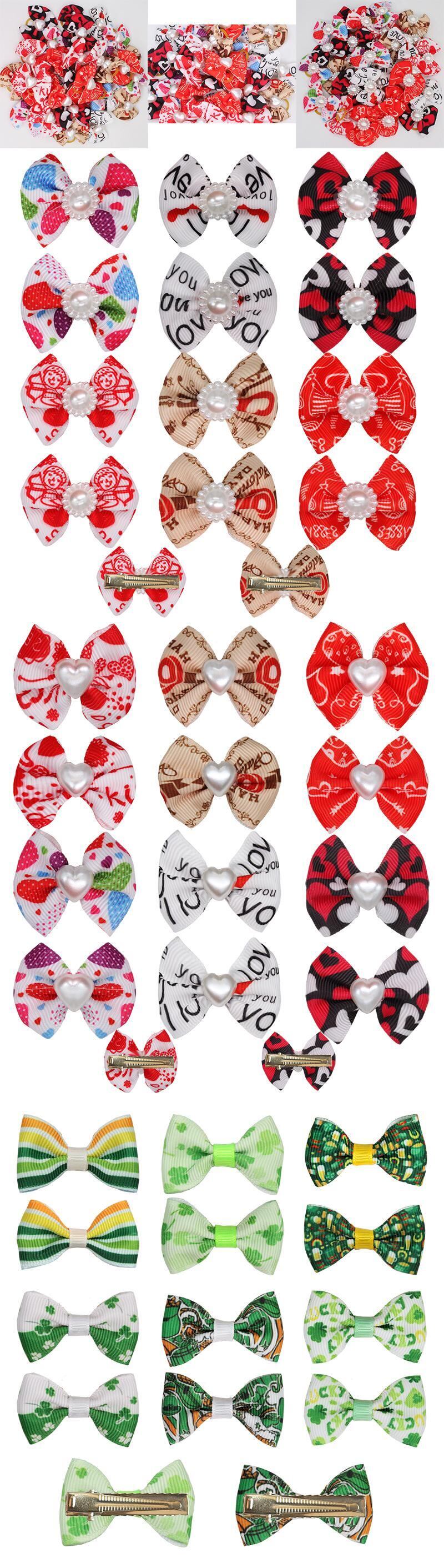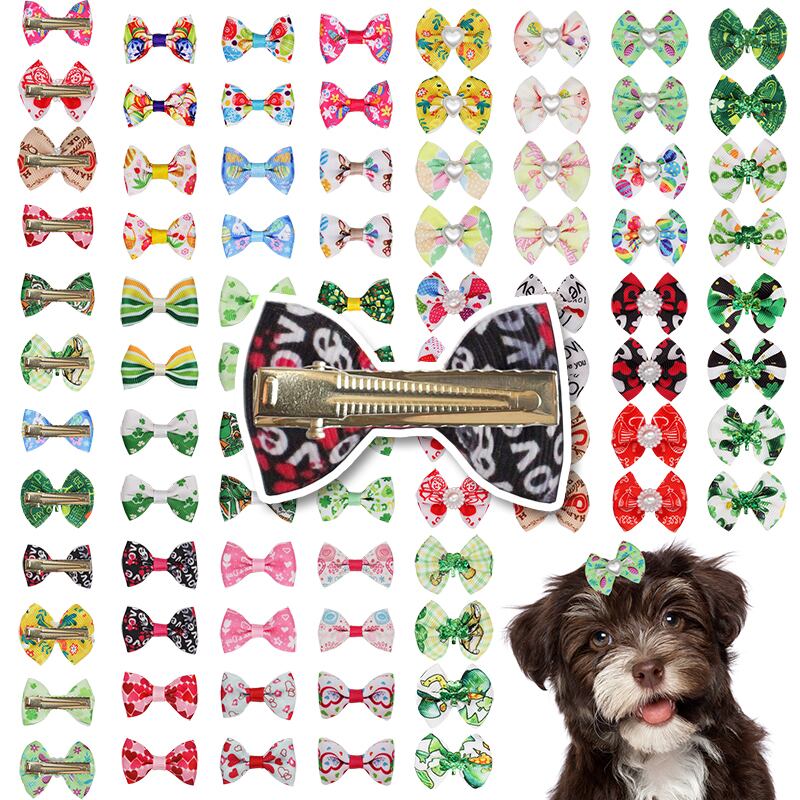 12/24 個犬の毛の弓クリップ子犬ヘアピンペット猫休日手作りバレンタインイースター聖パトリックペットヘアアクセサリー