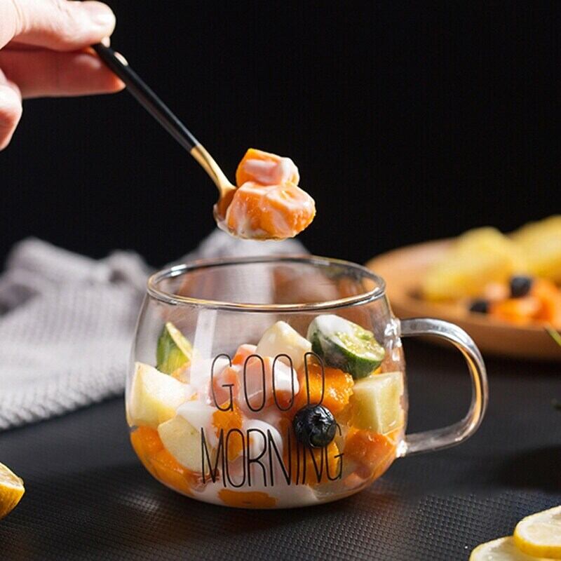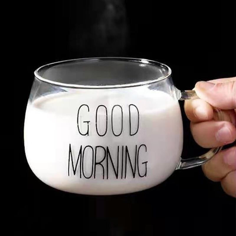 350 ミリリットル透明 Gl カップ朝食コーヒーカップクリエイティブ手紙ミルクカップポータブル箸置きハンドル耐熱カップ