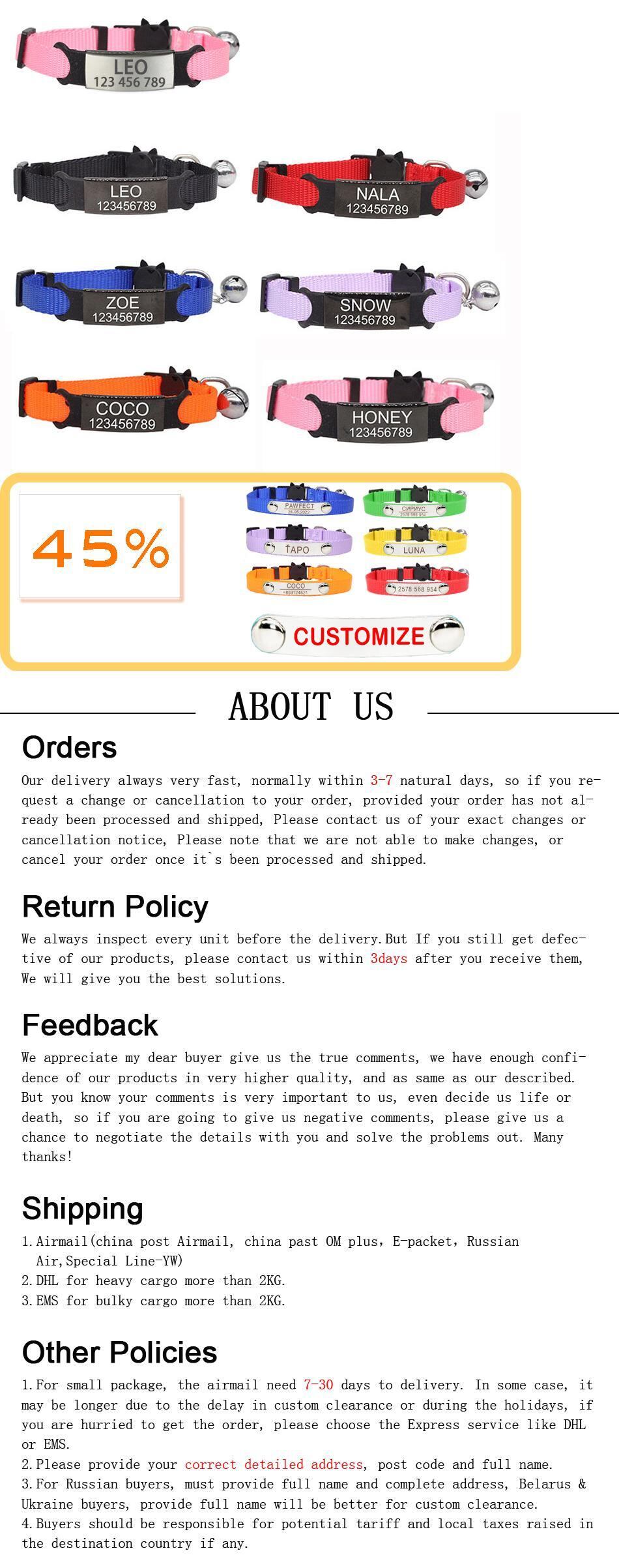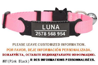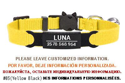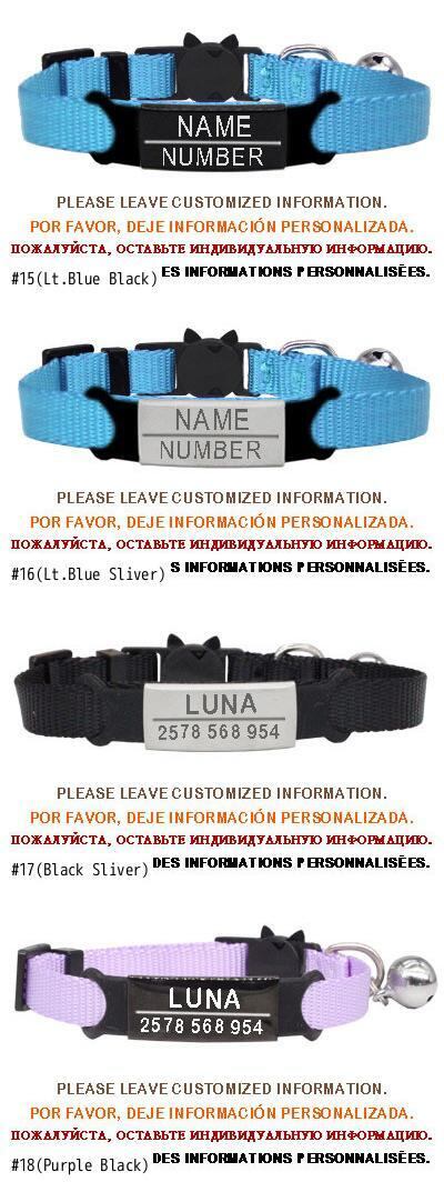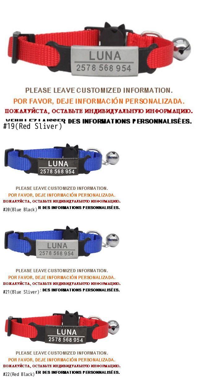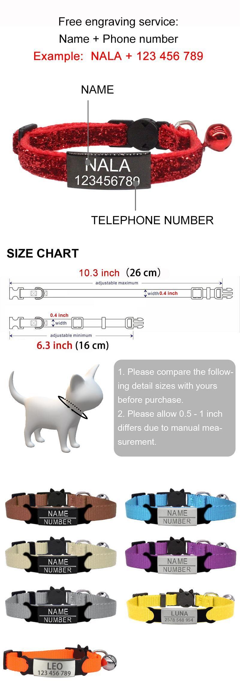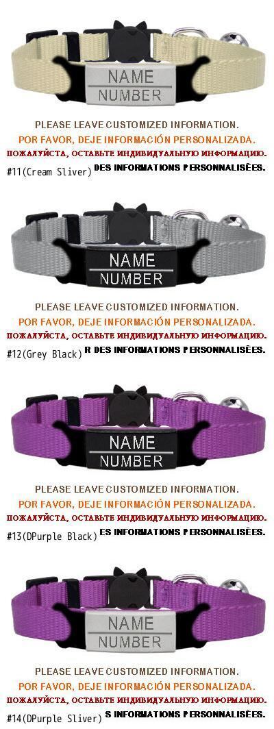 パーソナライズされた ID タグ 猫の首輪 ベル 彫刻 安全性 離脱 小型犬 ナイロン 調節可能 子犬 子猫 ネックレス
