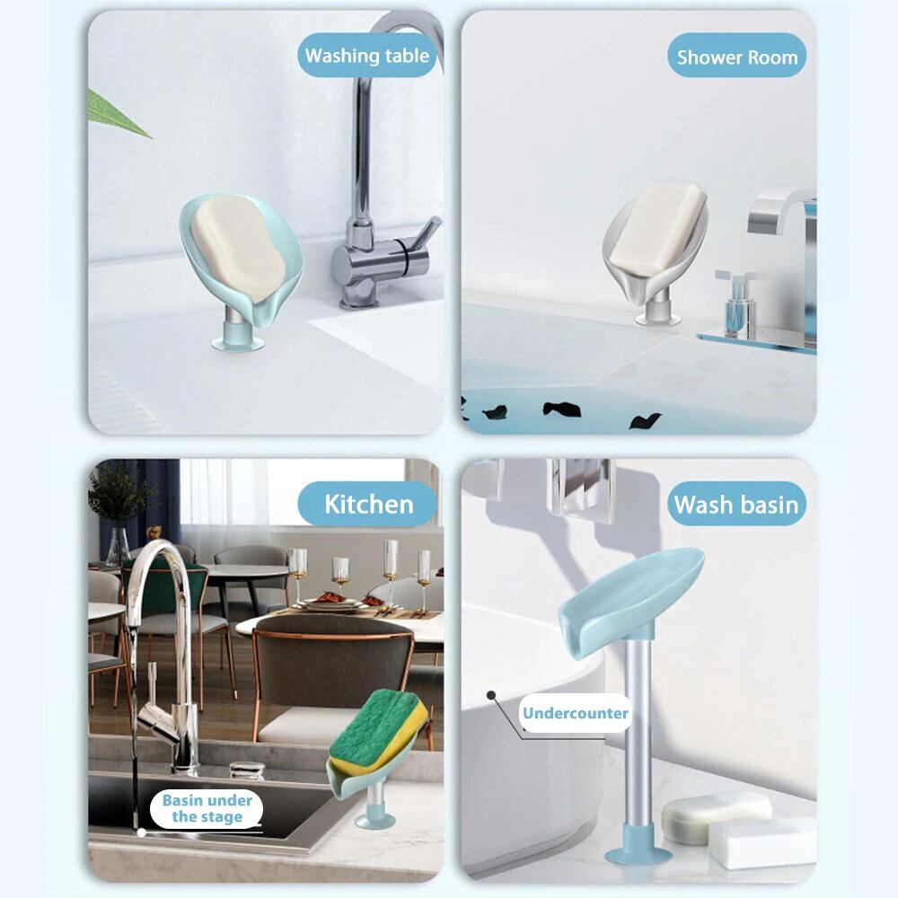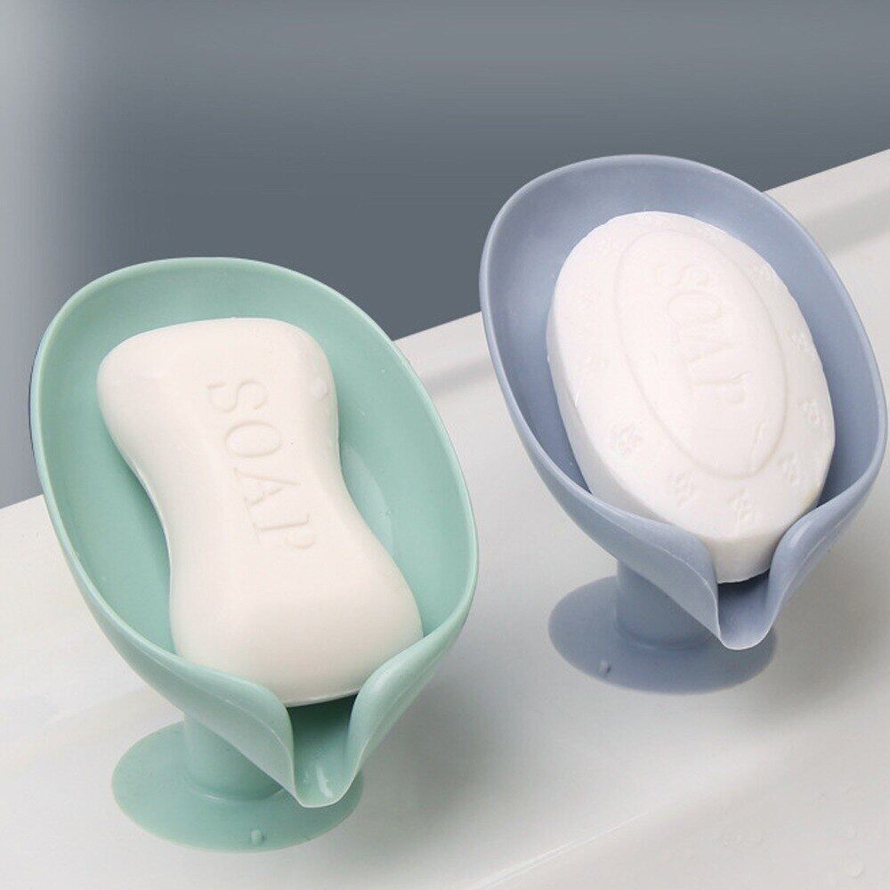 2 個吸引カップソープホルダー浴室のシャワーポータブルリーフソープディッシュプラスチックスポンジトレイキッチン浴室付属品