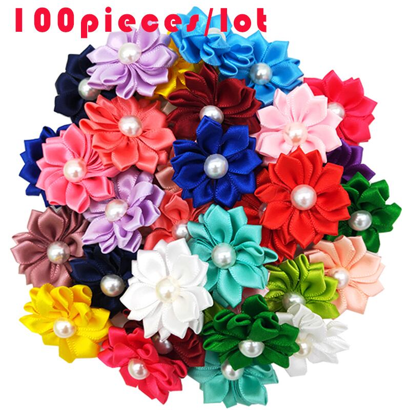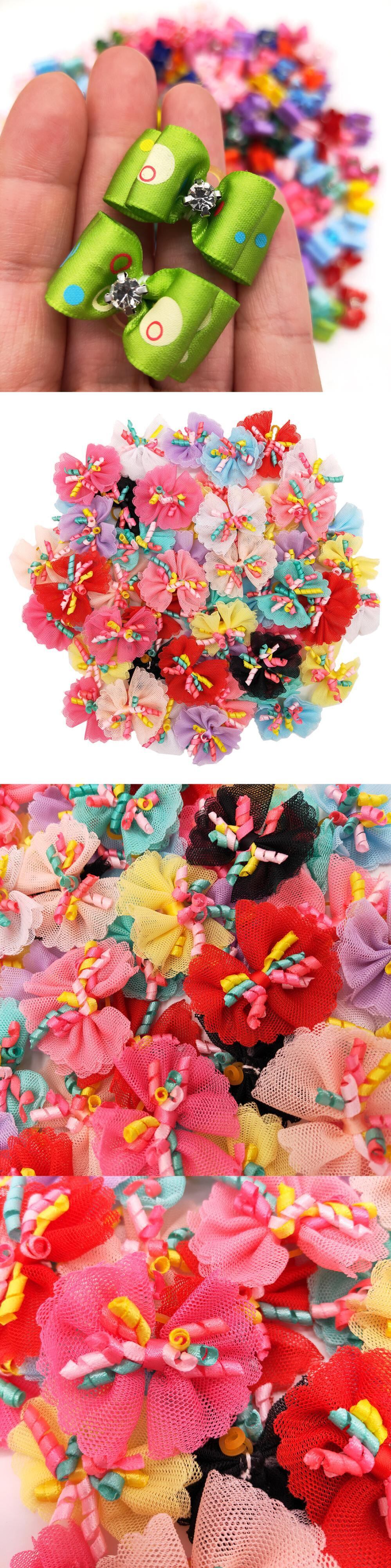 100 ピース/ロット小さなペット犬リボンボールグルーミングアクセサリー子犬弓弾性ゴムバンドペット用品