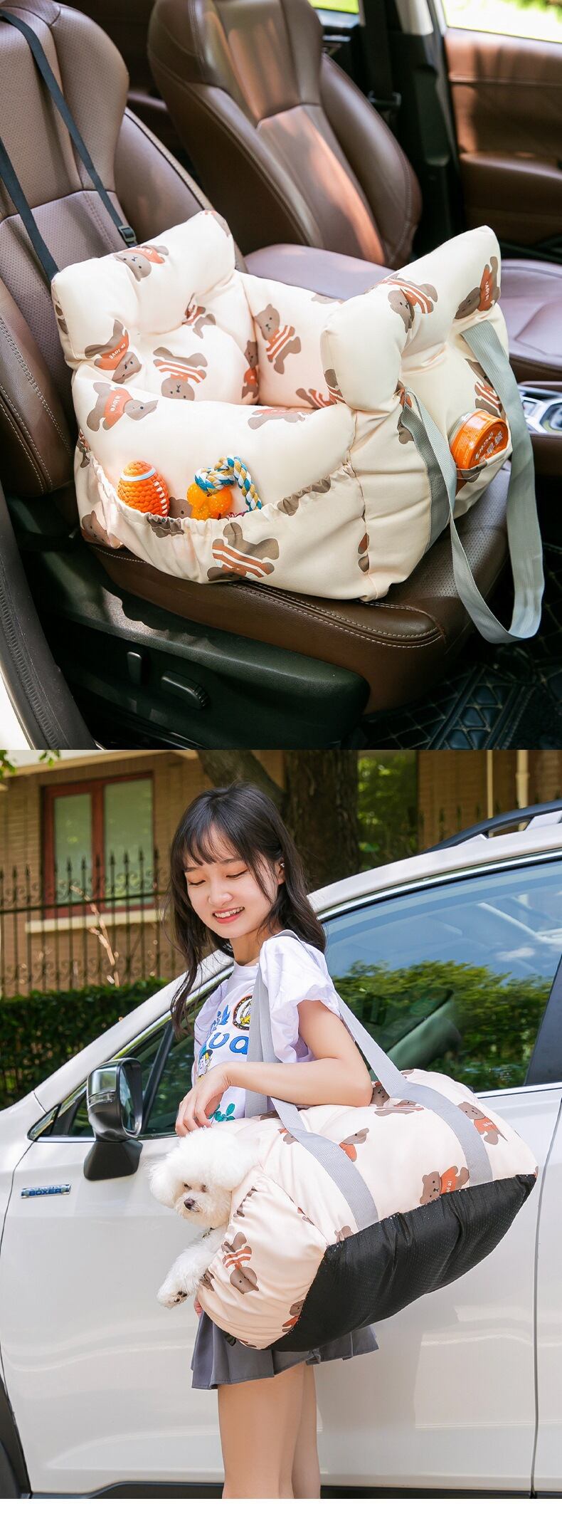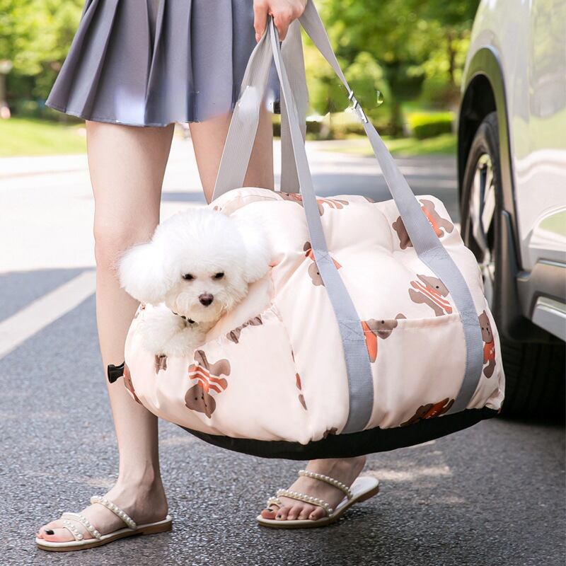 CAWAYI KENNEL ペット犬キャリア カーシートカバー 漫画プリント キャリー 猫 子犬バッグ 車 旅行 折りたたみハンモック バスケット ペットキャリア