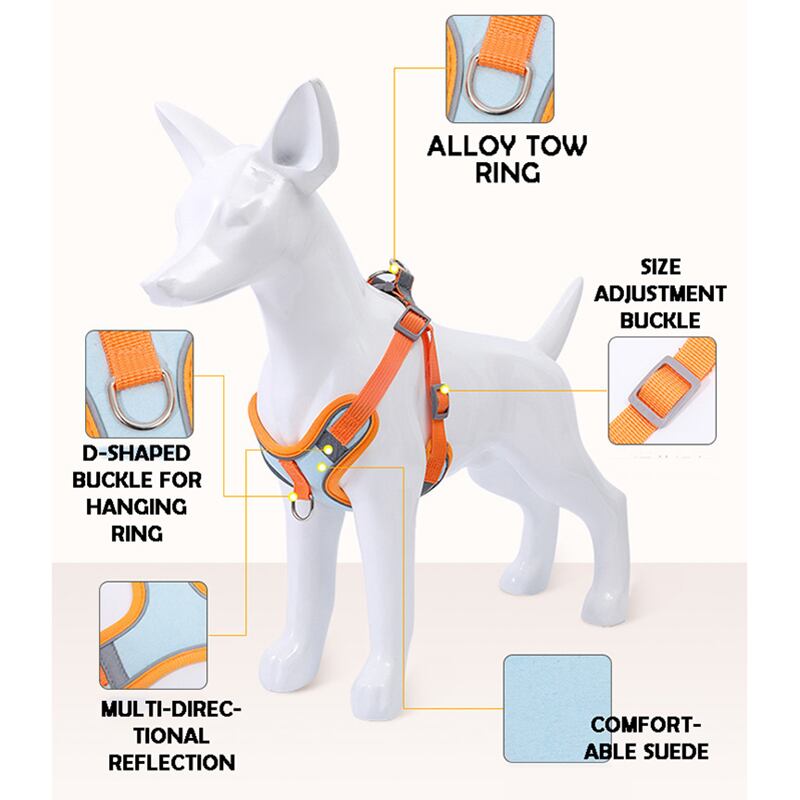リーシュ付き反射犬用ハーネスベスト猫調節可能なペットチェストストラップ屋外ウォーキングメッシュ小中ペット