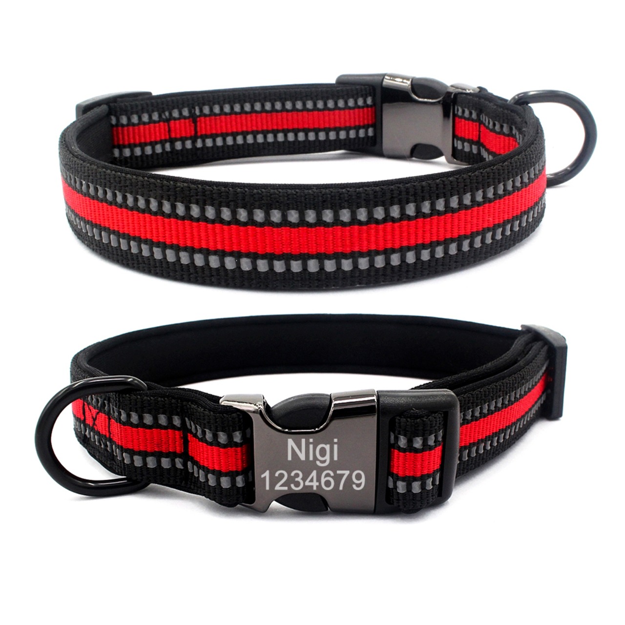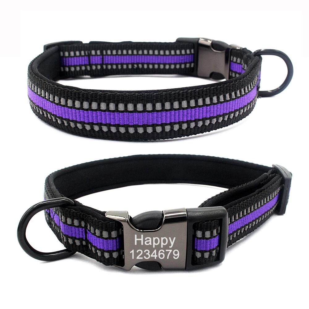 ナイロン犬の首輪 パーソナライズされた ID ナイロン ペット カスタム 刻印された名前 猫 レザー ネックレス 調節可能 小 中 大