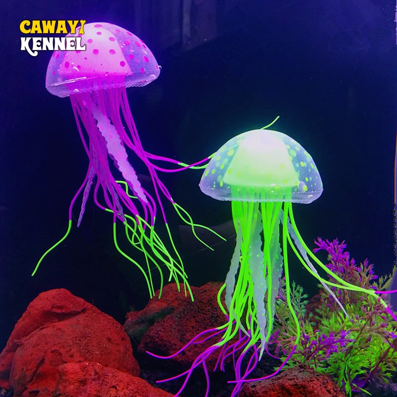 CAWAYI KENNEL 蛍光シミュレーション 光るクラゲ 水槽 水族館 装飾 ミニ潜水艦 オーナメント 装飾 水生おもちゃ