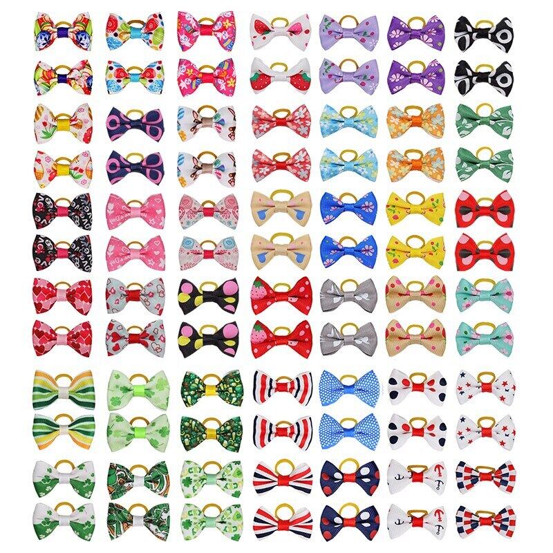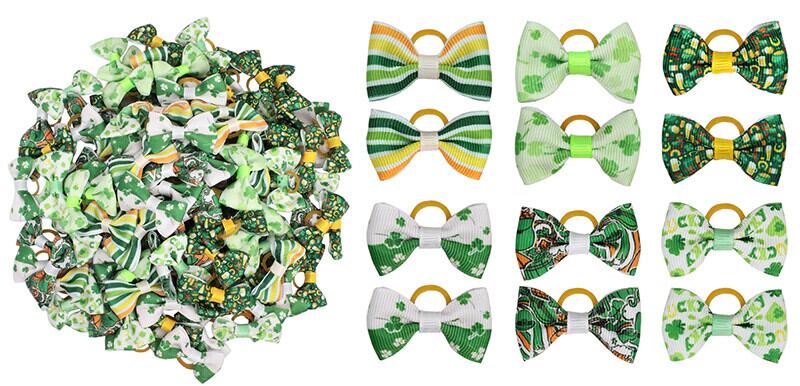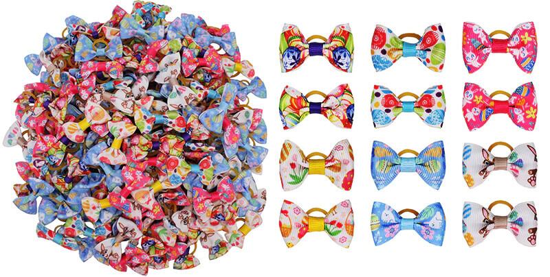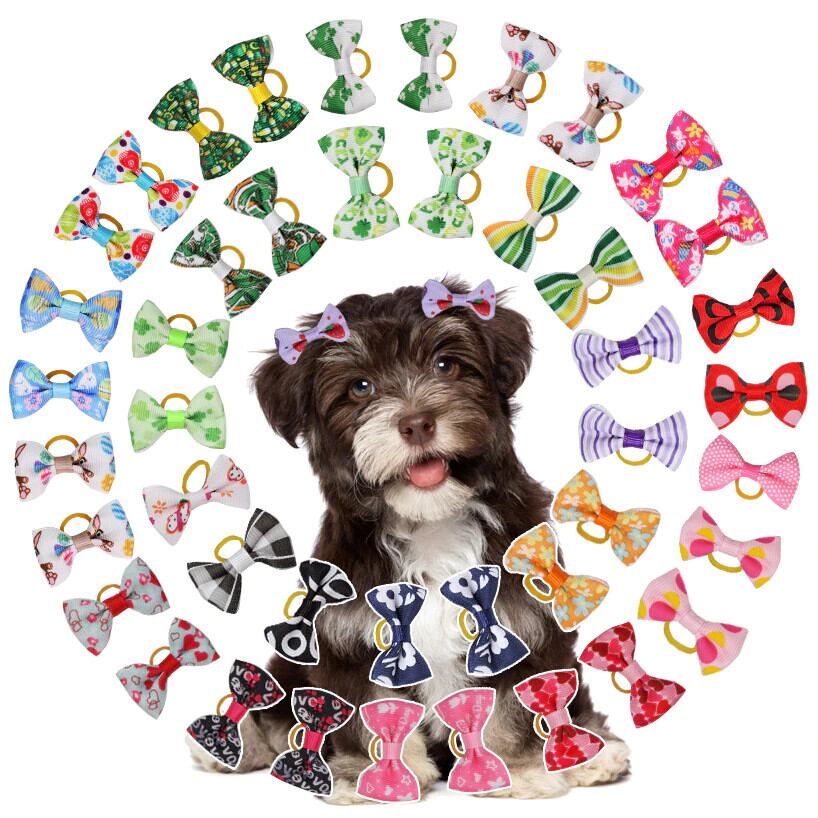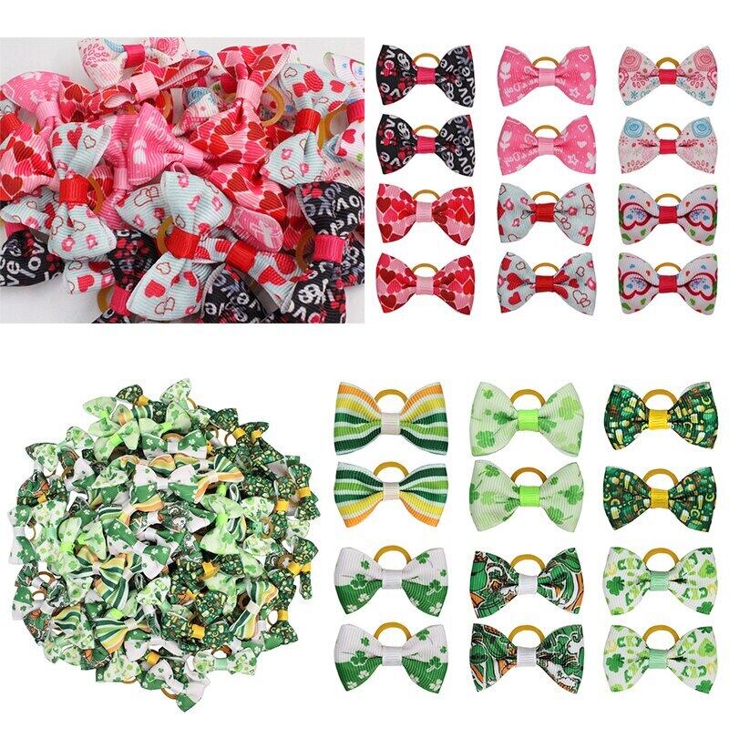 12/24/36 個ペット犬弓ボールヘアーゴムバンドグルーミング子犬ペット帽子バレンタインデー聖パトリックの日独立記念日